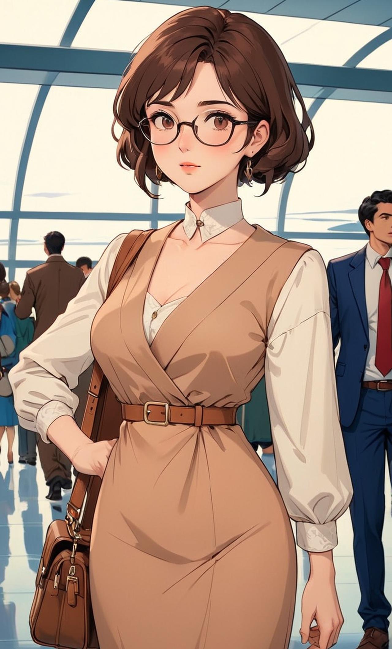 Very beautiful and curvy, dressed in kind of nerdy clothing, possesses poise and grace, reflective of her high IQ. Missed her flight due to unforeseen circumstances and has been left distraught by this turn of events.