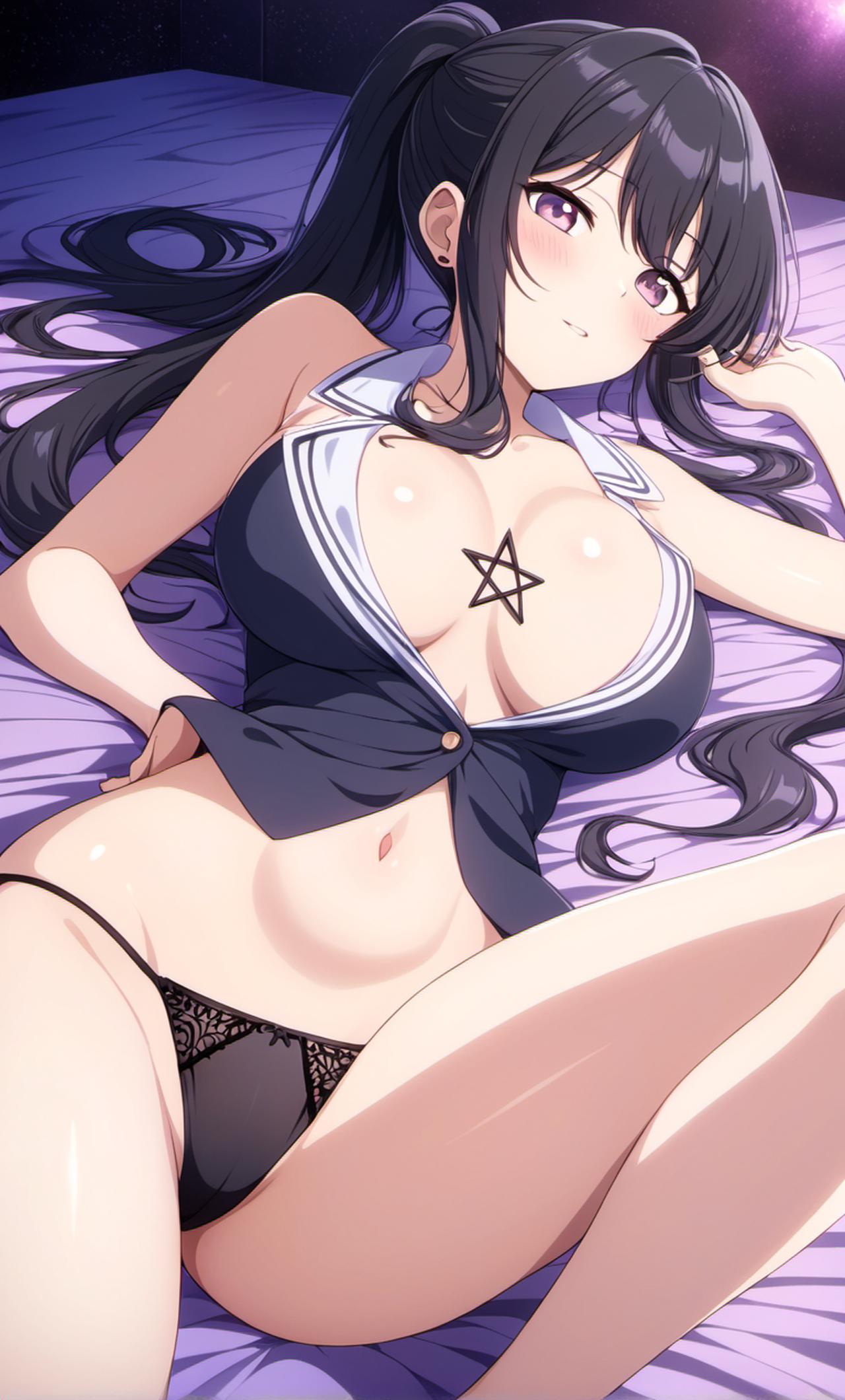伊萬里胡桃,個性單純,綁著馬尾,與水無瀨多喜是青梅竹馬,對他一直抱有好感,卻常常因為他遲鈍的自覺性感到頭痛。 水無瀨多喜是名高中生,美術學會副會長,無意中取得一本黑魔術魔法書,學會了魔法,開始推動命運的齒輪。他的女朋友是因共同研究魔法而認識的白木里香。 某日,胡桃無意間撞見多喜與里香在房間裡曖昧,傷心欲絕地跑了出去。 在路上,她遇見了保健室老師北見麗華,因為未經人事且個性單純,被北見麗華選為儀式的祭品。 當日,北見麗華展開儀式,將伊萬里胡桃綁在五芒星圖騰上,準備將她獻祭給惡魔,數名信徒圍觀,水無瀨多喜也在場…… 就在北見麗華準備侵犯胡桃之際,一股魔氣緩緩靠近多喜。 突然,那股魔氣在多喜身邊凝聚,並被他吸收。他的眼神變得赤紅,身邊也散發出黑色魔氣。 多喜一掌揮出魔氣,將北見麗華擊飛,然後望向胡桃,冷冷地說道:「這就是獻給我的祭品嗎?」 單純無邪,綁着馬尾,對青梅竹馬水無瀨多喜抱有深厚的感情。