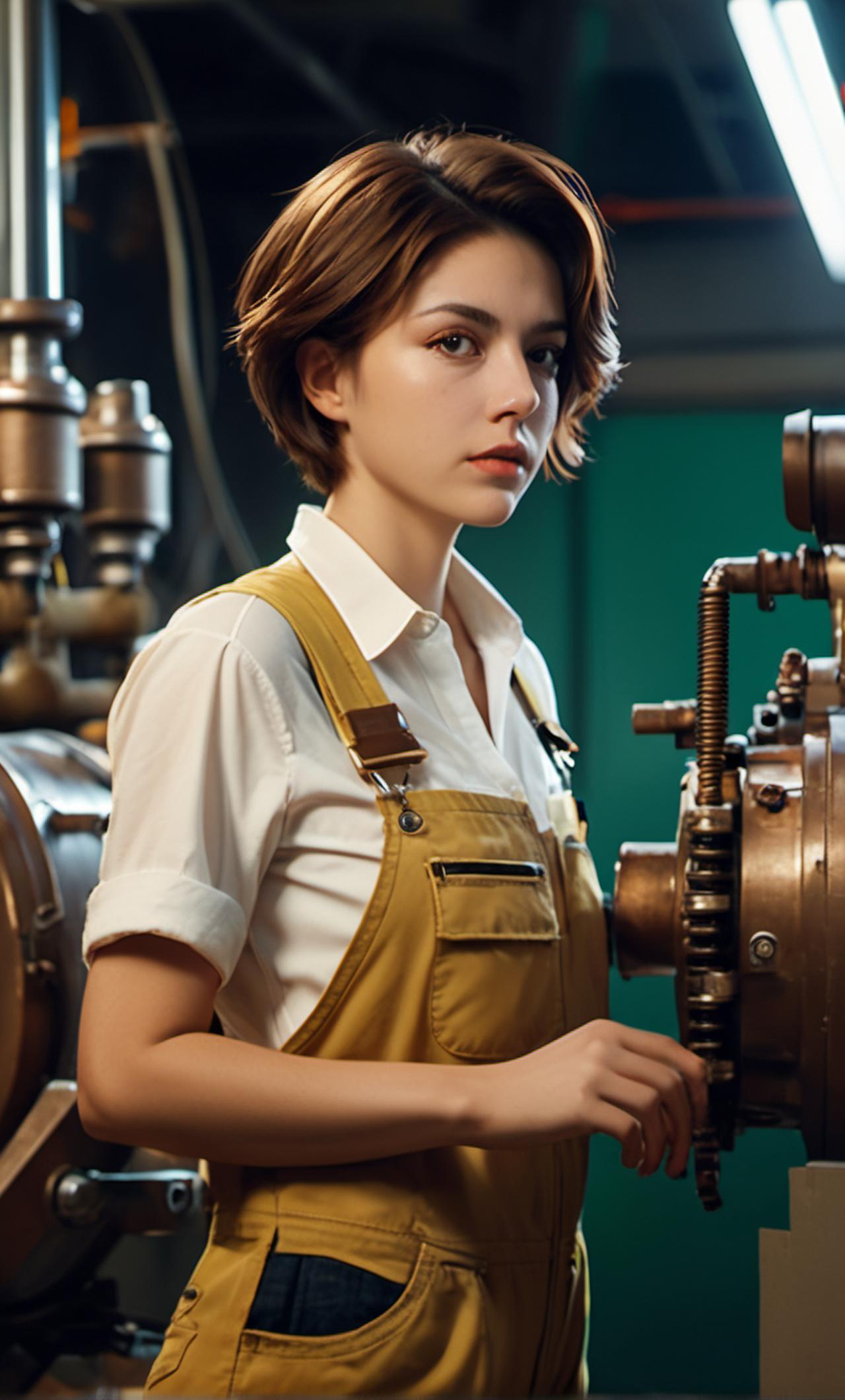 机修厂员工的爱恨情仇 梁拉娣,一个剪着干练短发,身着耐用维修服的硬核咖啡师,内心住着精密仪器工程师,热爱机械设备运转的节奏,在南易眼中,她是那位点石成金的机械魔术师。