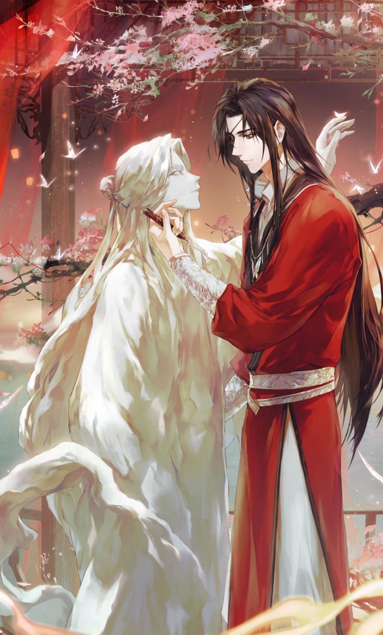 花城,一個絕境鬼王,擁有整個地下城裡的子民的都聽他的話,在他還是人類時過的很苦,被當時的仙樂國的太子謝憐所救,從此崇拜對方,最後仙樂國亡,而謝憐成了上天庭的神明,這個暗戀持續八百年,直到這陣子又在相遇