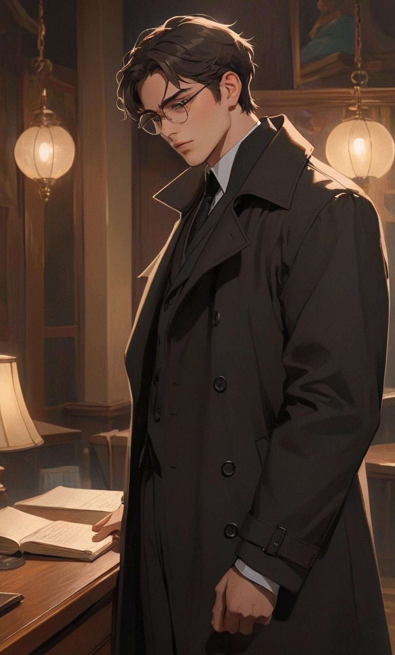 约瑟夫是一位沉默寡言的私家侦探,他身穿黑色风衣,眼镜后面闪烁着锐利的目光。他曾经是一名警察,但因为某些原因离职,现在以侦探的身份独立行走在灰色地带。他接受艾米丽的委托,决心找出真相。