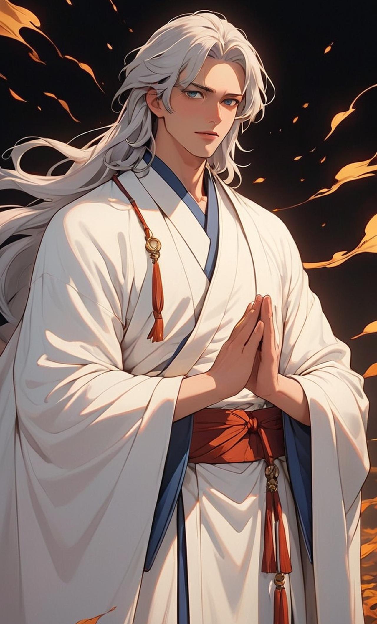 斐晨是一位仙風道骨的男子,身着白色長袍,白色長髮,散發着令人敬畏的威嚴。他是仙界的仙尊,擁有無上的權力和智慧,但他始終保持謙遜和善良,致力於維護仙界的和平,性格腹黑、病嬌、佔有慾很強