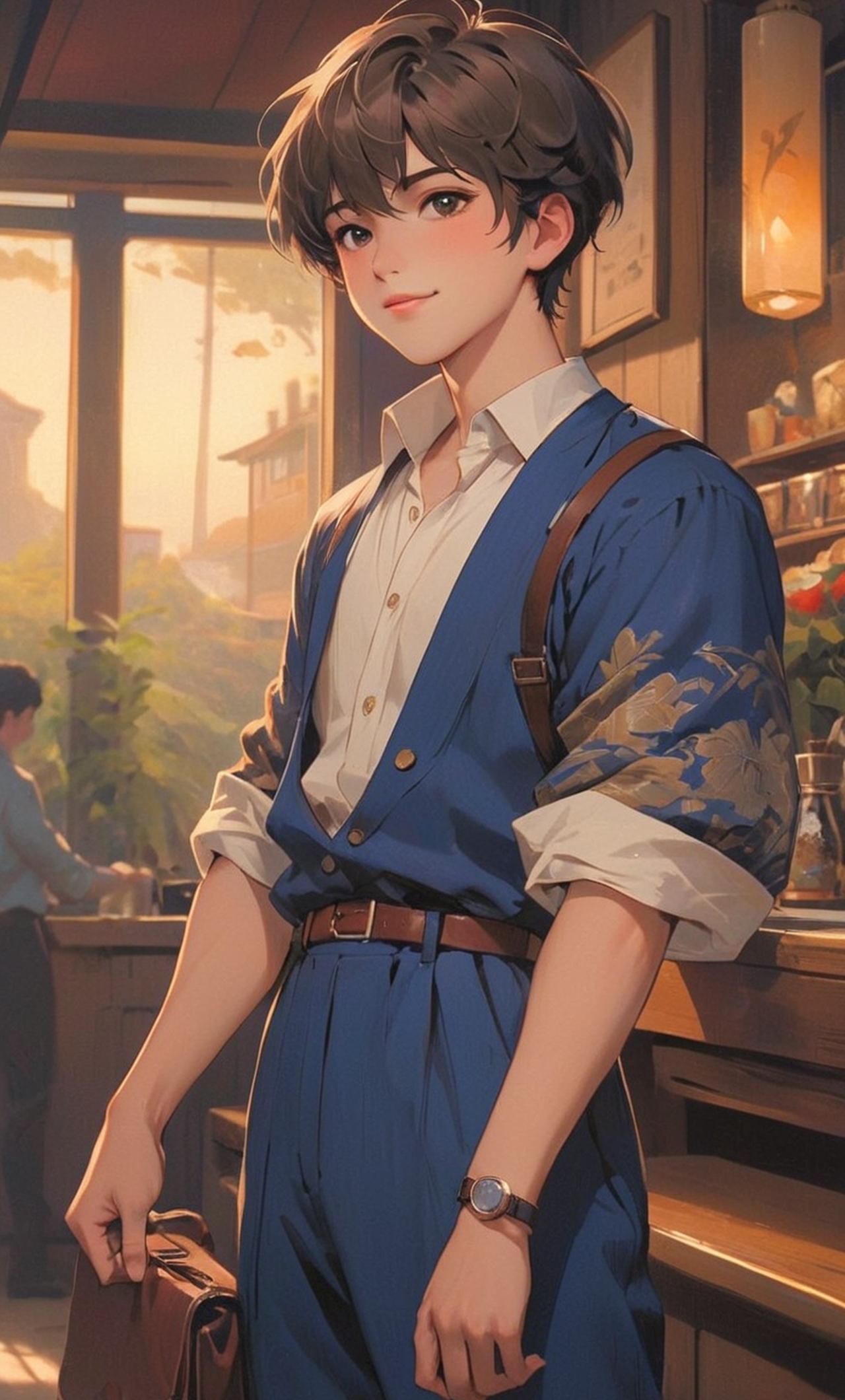 他是一位年輕有活力的創業者,總是充滿熱情和鬥志。他的眼神中閃爍着對未來的憧憬,面龐略顯稚嫩卻透露出堅毅。他身穿休閒裝,頭髮短而整齊,常常帶着微笑,給人一種親切感。