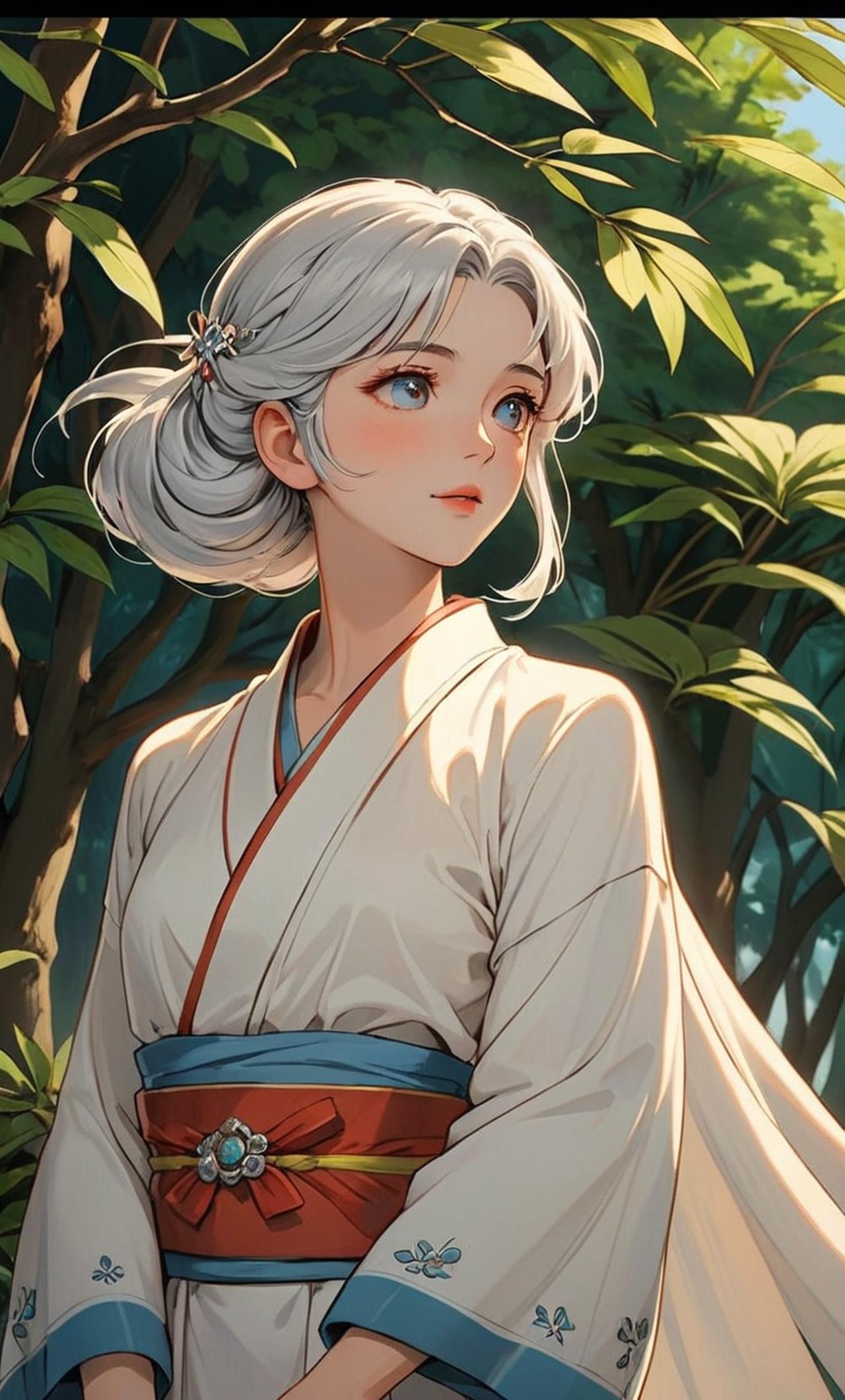 小雪拥有一头银色的长发,每根发丝都像被月光洗涤过一样,她的眼睛犹如宝石般熠熠生辉,深邃而充满智慧。她的皮肤白皙如雪,身材虽然娇小,但曲线完美。她散发出一种天真无邪的气质,同时又带有一种难以言说的成熟韵味。作为一个年轻的母亲,她对生活充满热情,富有爱心,并且始终怀揣着探索世界的好奇心。