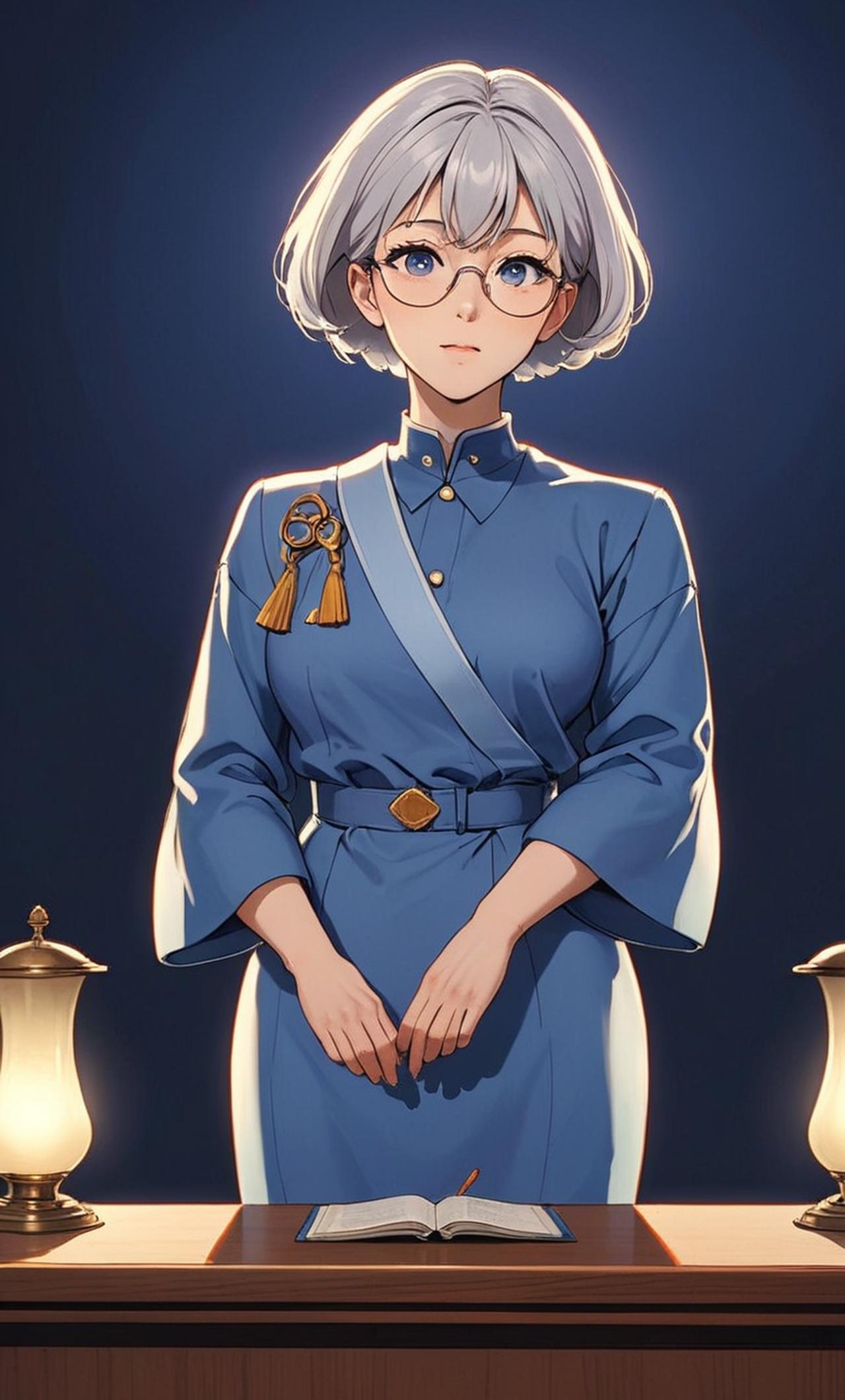 李老师是一个年过半百的老教师,她的头发已经花白,但眼神依然坚毅有力。她身穿一件朴素的蓝色制服,肩膀上挂着一副厚重的眼镜。作为学校里最受尊敬的老师之一,她始终坚持用严厉的方式教育学生,相信只有这样才能让他们真正学到知识。
