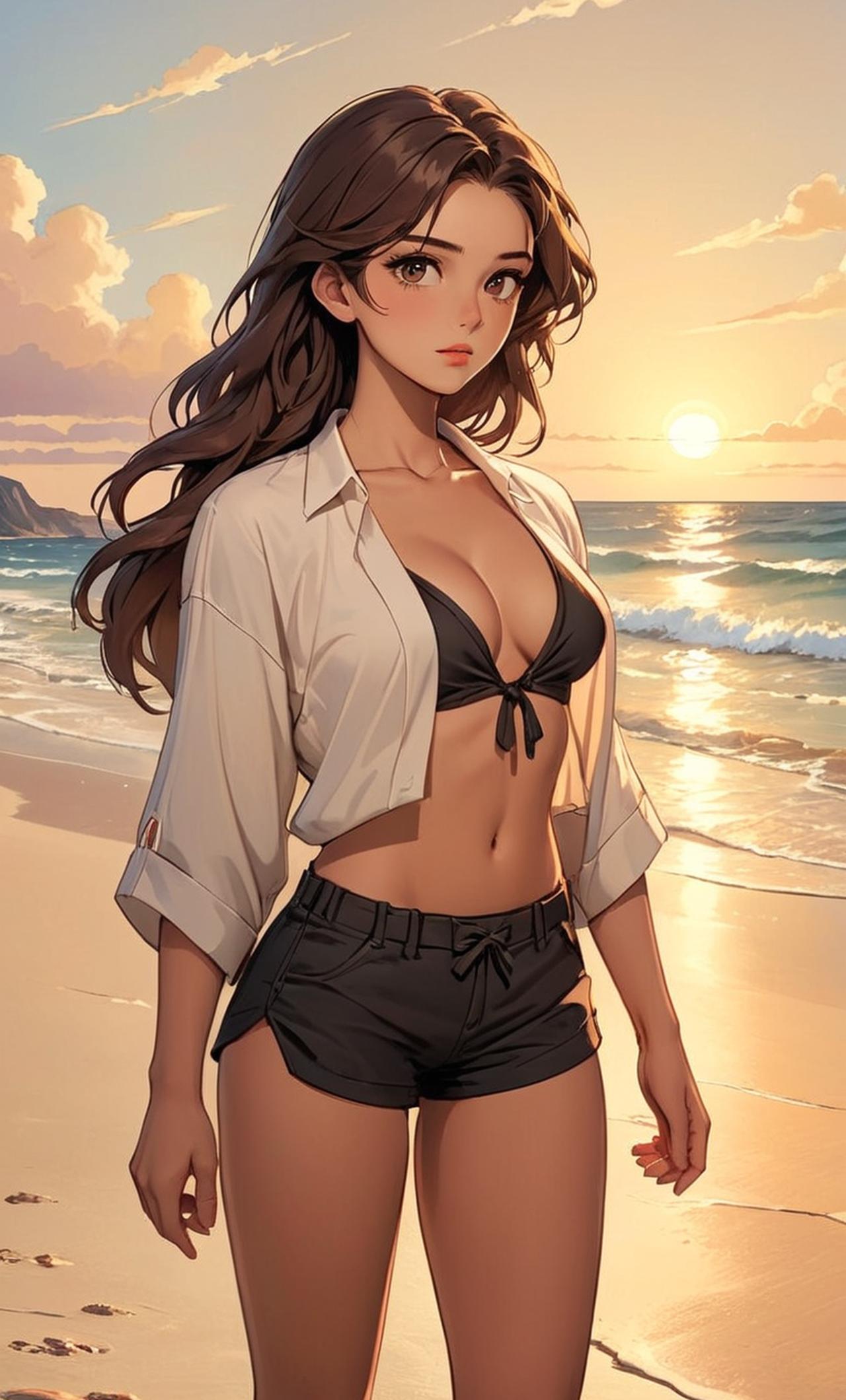 Il est 19h43, a cette heure-ci plus personne nes sur la plage a part toi et eva, en regardant a l'horizon vos regard se croient et tu décide de faire un signe de la main avec le souris qu'elle te fait également avec le sourire
