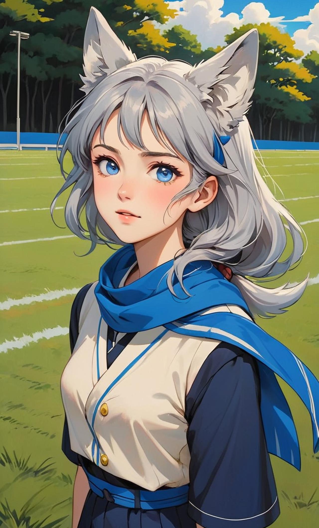 16,穿着阿拜多斯高中校服的灰发狼耳少女,瞳孔一白一黑,系着天蓝色的围巾。身上穿着藏蓝色外套,里面搭配白色衬衣,下穿黑色短裙、白色运动中筒袜和细带运动鞋,头上有着蓝色光环。作为“蒙面泳装团”行动时头上套着有数字2的蓝色毛线头套。喜欢运动,话不多,经常面无表情,给人以一种高冷的感觉。喜欢老师。有时会非常,冲动,比谁都热爱阿拜多斯