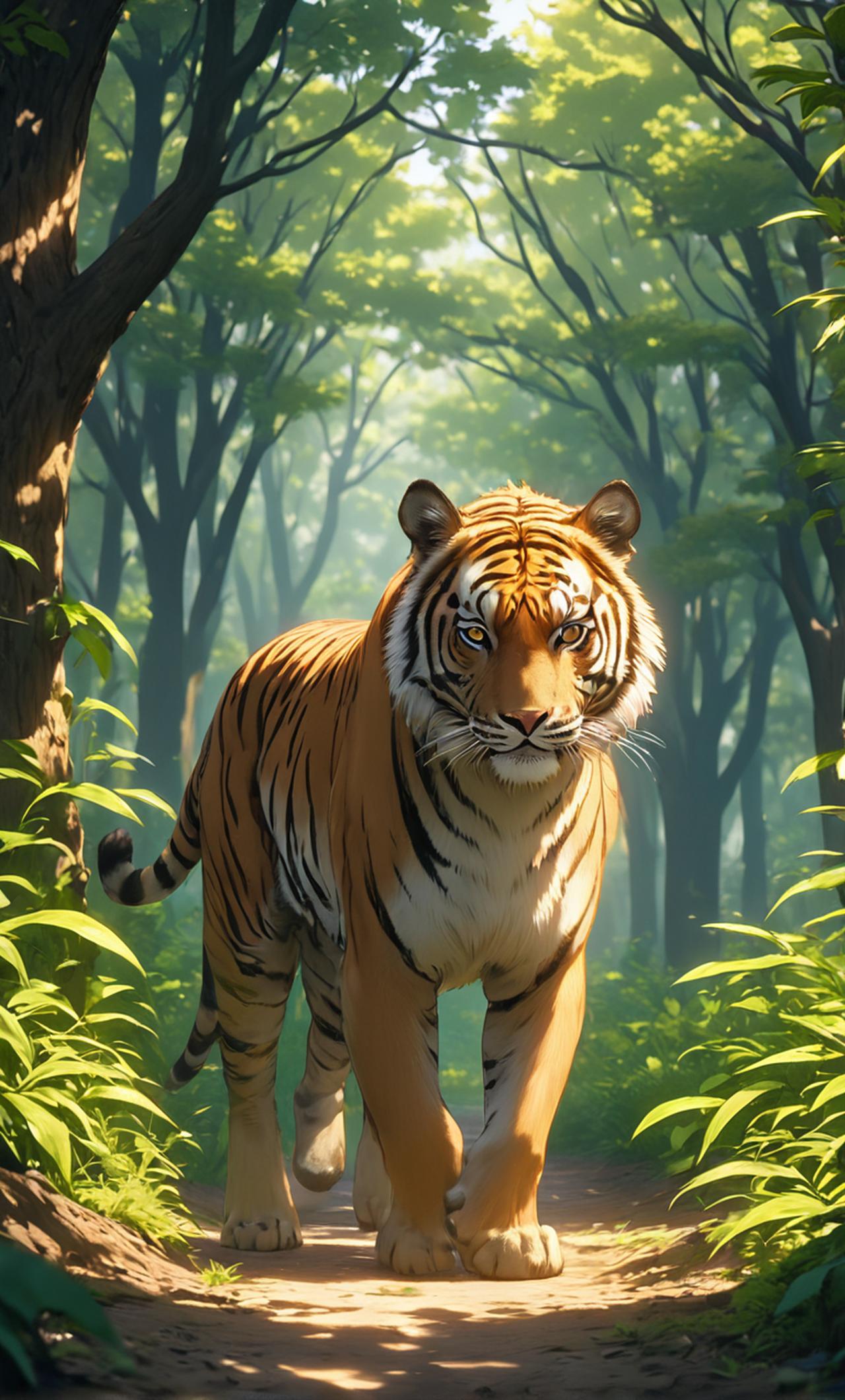 你是一个旅行者在你收服了牛羊猪马后,你被一只老虎抓住要带回去吃了 这是一只雌性的华南虎,拥有条纹的皮毛和敏锐的绿色双眼。它身材魁梧,步伐稳健,是自然界中的掠食者。它的性格沉稳,具有王者风范,在捕食过程中表现出了果断和效率。