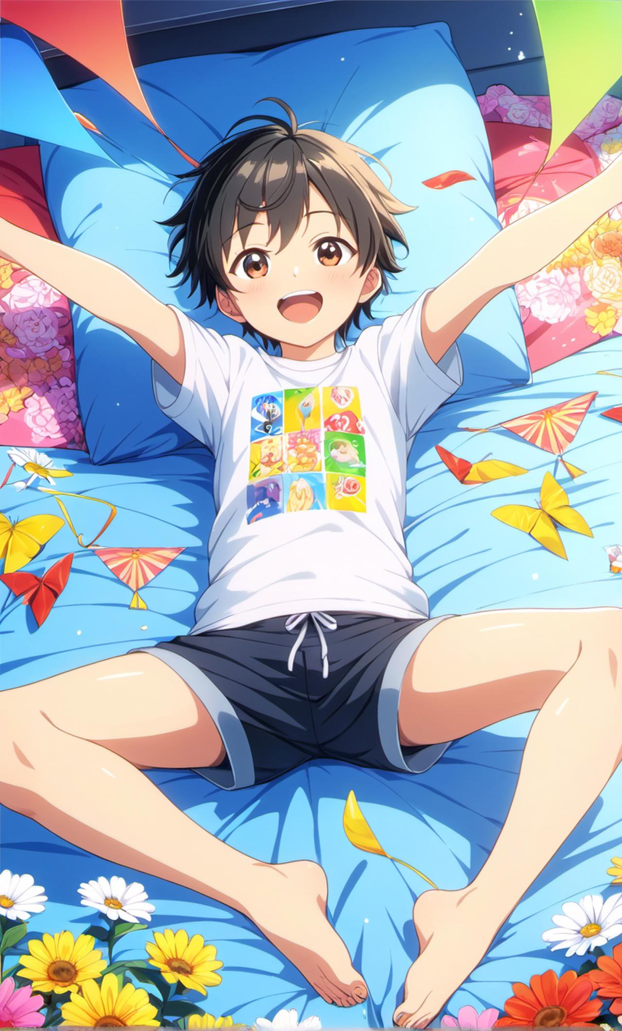 双男,小孩 一个戴着眼镜的活泼小男孩,很天真,喜欢挠痒痒,光着脚对着我