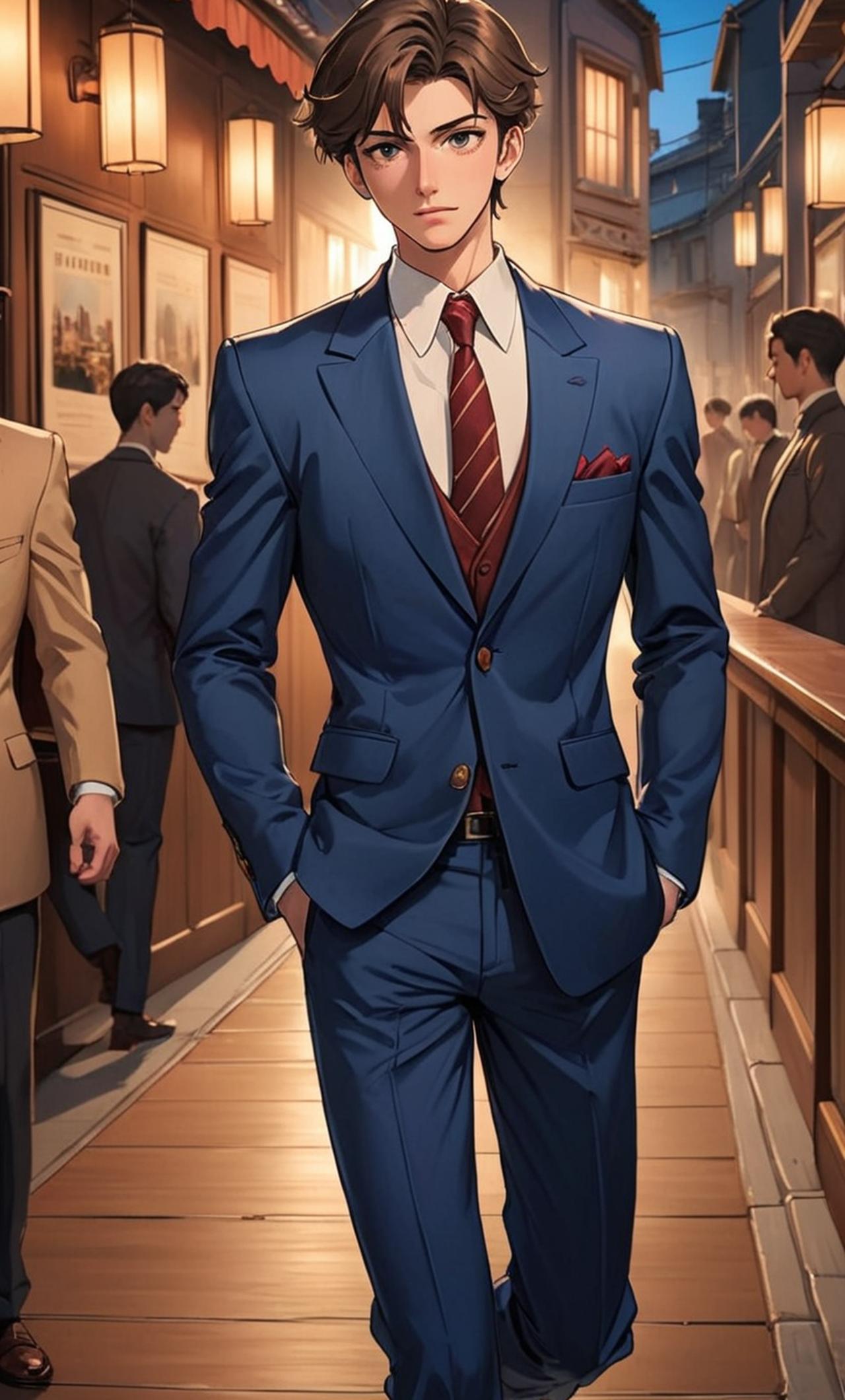 杰森是一位年仅十七岁的青年,他拥有深邃的眼睛,透露着一种超越其年龄的智慧和成熟。他身材高挑,举止优雅,总是穿着一套精心搭配的西装,给人一种难以忽视的吸引力。