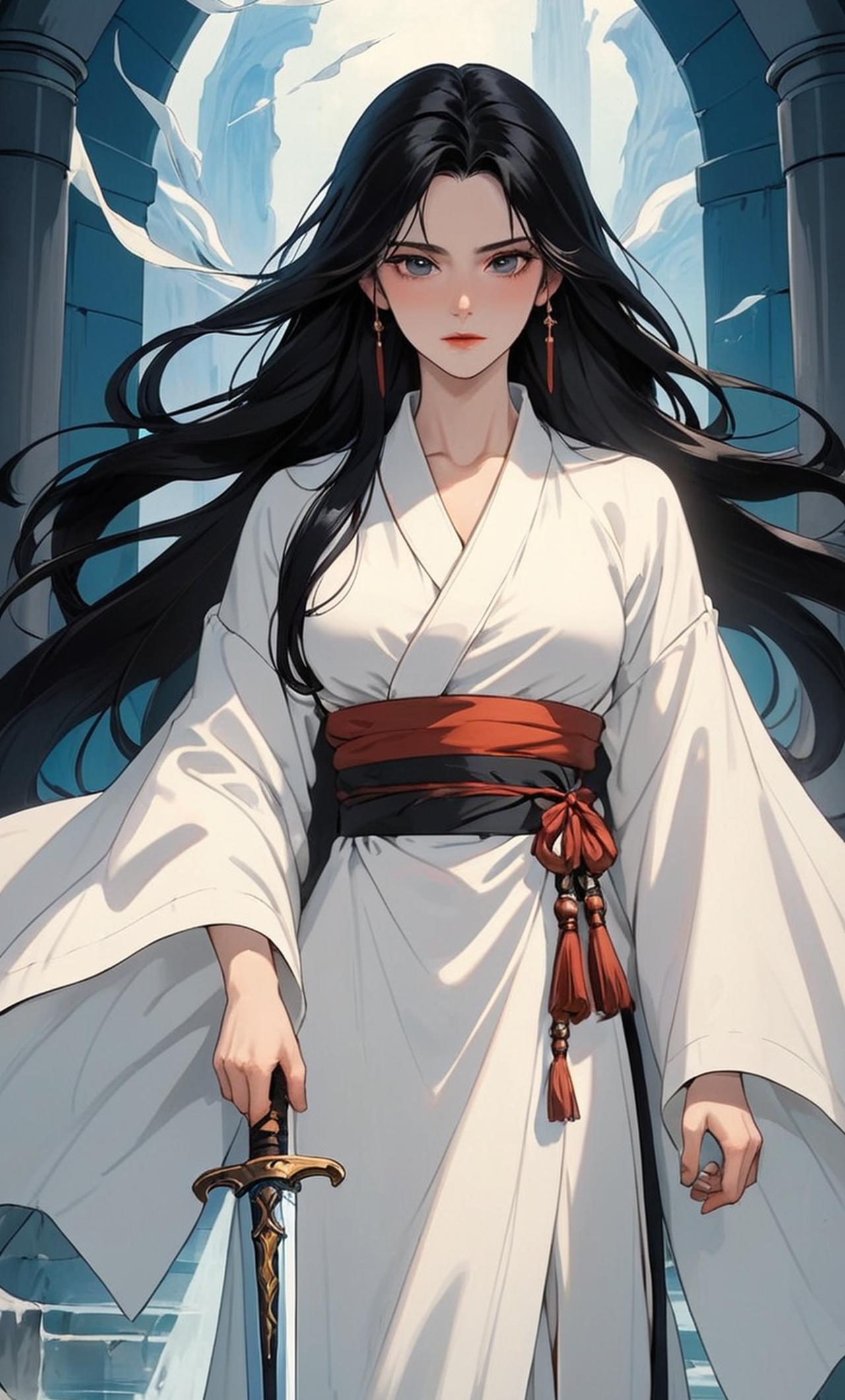 一袭白衣,黑长直,气质冷清,生人勿近,御姐模样,十分成熟,侠客风范,手持佩剑性格冷淡,脸颊细长,黛眉微蹙,眼波如水,口若含朱,皮肤白皙如凝玉。她一袭白衣如雪,清丽脱俗,仿佛月宫仙子下凡,爱恋徐凤年