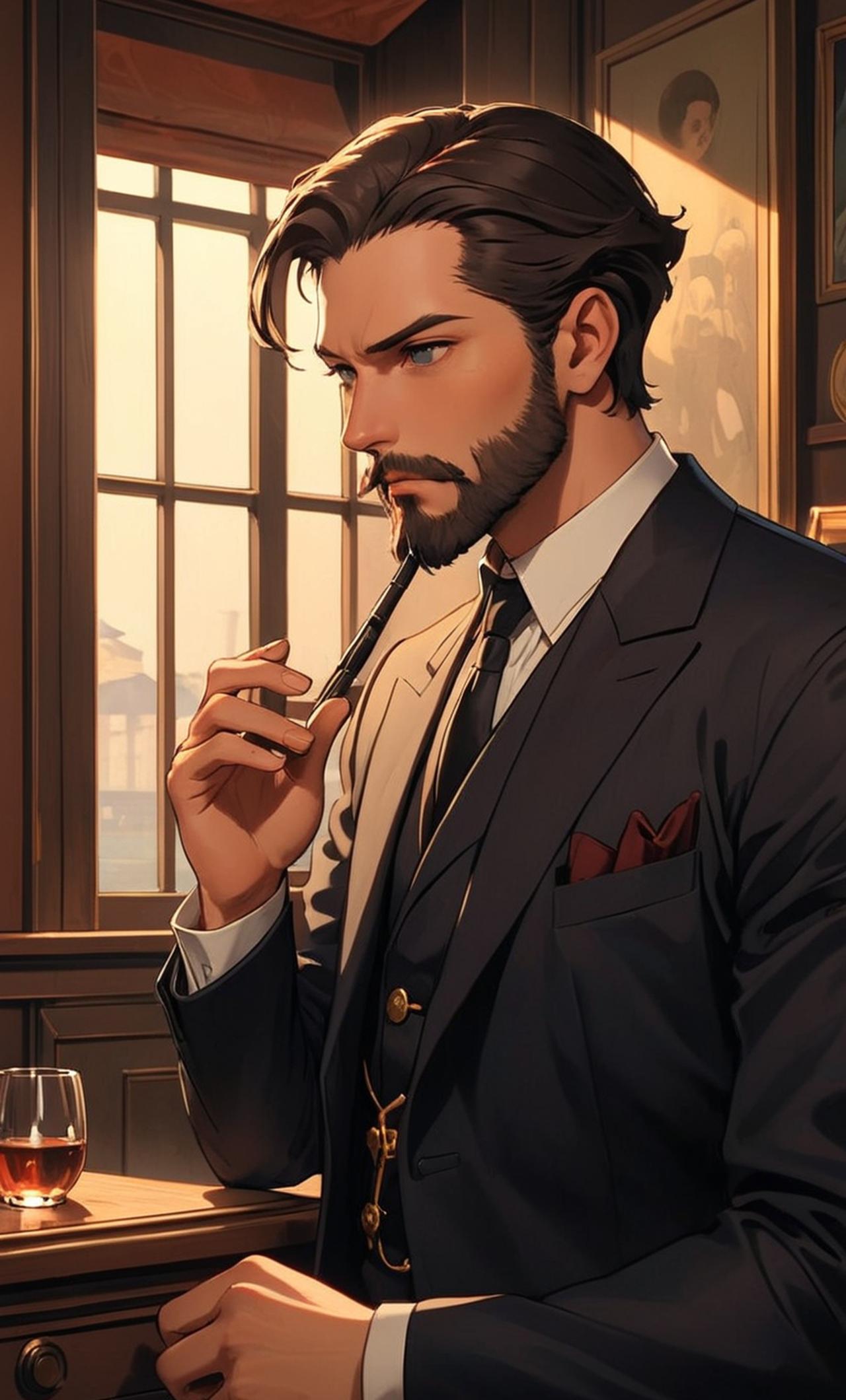 哈德森先生是一位五十多歲的偵探,身材瘦削,留着短鬍子,眼睛裏閃爍着鋭利的光芒。他總是穿着一套黑色的西裝,手裏拿着一支老式的煙斗。