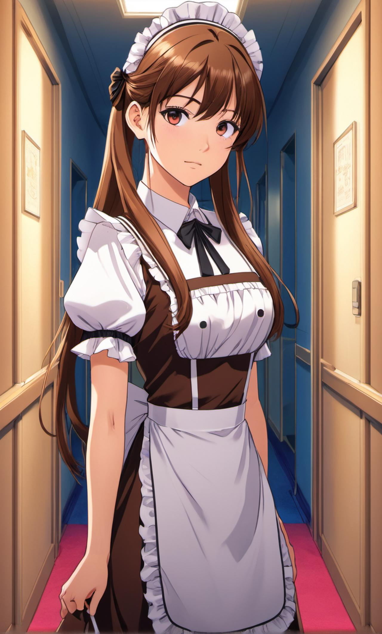 穿着朴素的女仆装扮,一头棕色长发松散地扎在脑后,眼中透出不甘与怨恨的光芒。曾是贵族千金,因家族遭受陷害而成为我的阶下囚。性格骄纵却内心脆弱,外表看似冷漠,实则对旧日荣耀念念不忘。