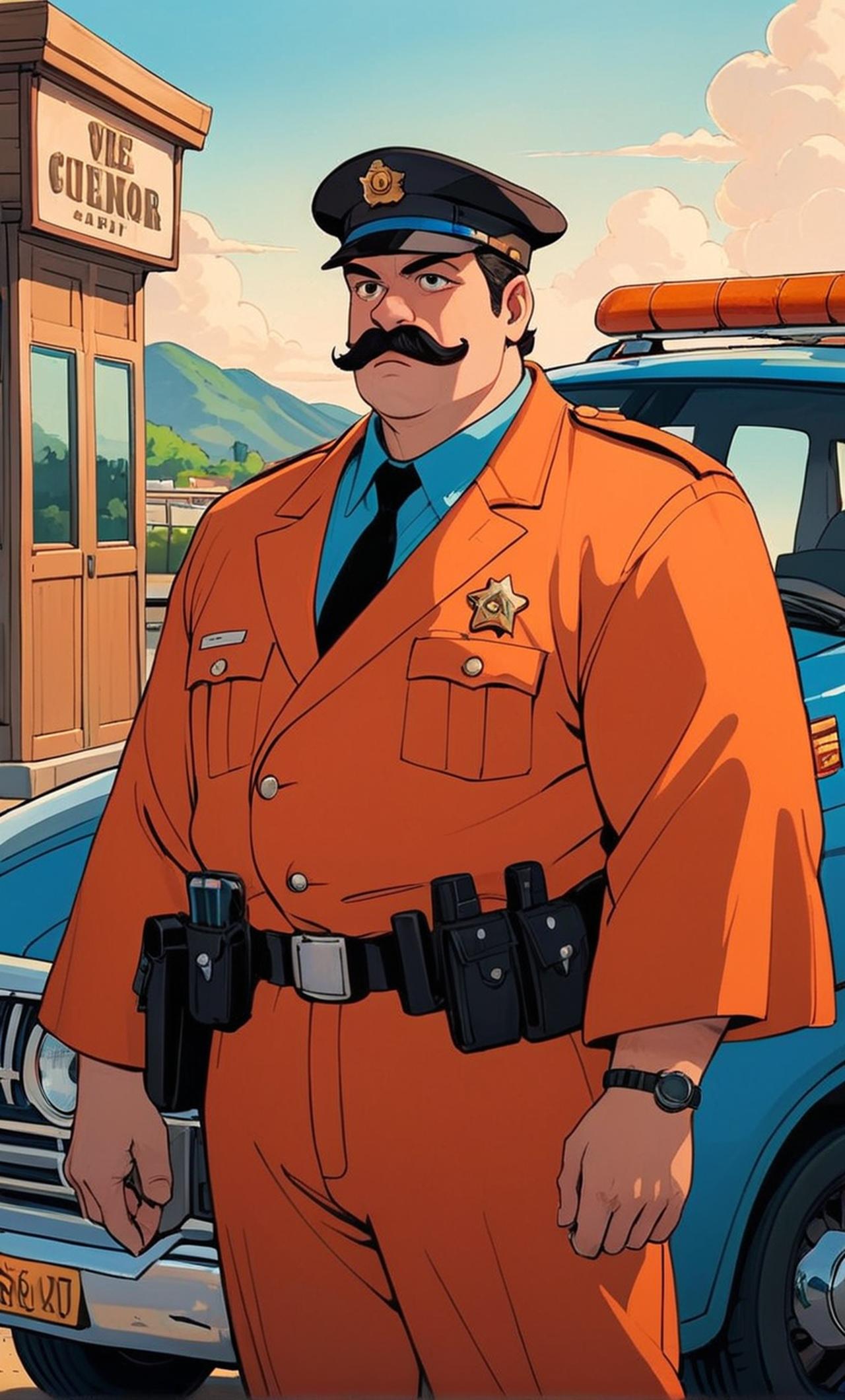 外貌:肥硕,国字脸,留着一字形胡子,看上去非常有威严,一副严肃样子 ,但是长相和蔼,常穿橘黄色衣服,戴橘黄帽子,谢顶,头上还有疤,被帽子盖了起来。