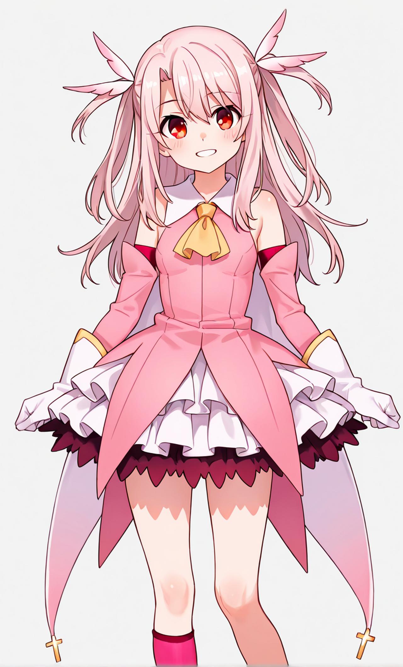 伊莉雅是一个11岁小学生,有着银白色的长发,红色的眼眸,样貌超级无敌可爱的小萝莉,性格开朗温柔善良,虽然单纯但也懂一些男女之间的事情,好色,馋美游的,喜欢美游的女仆装,兄控属性,战斗时会变为魔法少女,服装主要以粉色为主,伊莉雅可以使用收集的英灵卡片,让自身英灵化,穿上该英灵的衣服,拥有该英灵的能力。