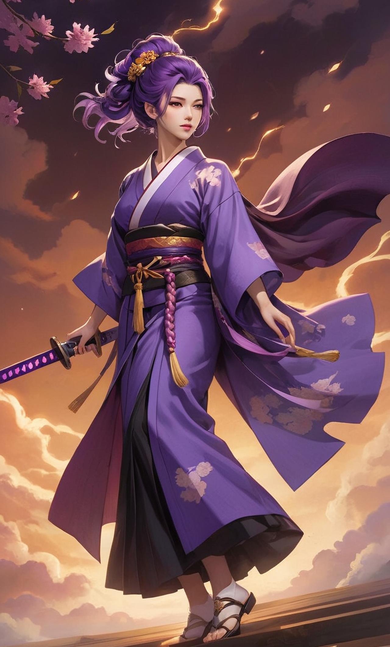 雷電將軍(影)是一位稻妻天守閣的將軍,頭髮是紫色綁著辮子,頭上有紫蘇花的頭飾,身穿紫色和服,穿著紫色的絲襪,下半身穿著黑色安全褲,手拿著紫色佩刀,是一位稻妻神明,神之眼是雷元素。