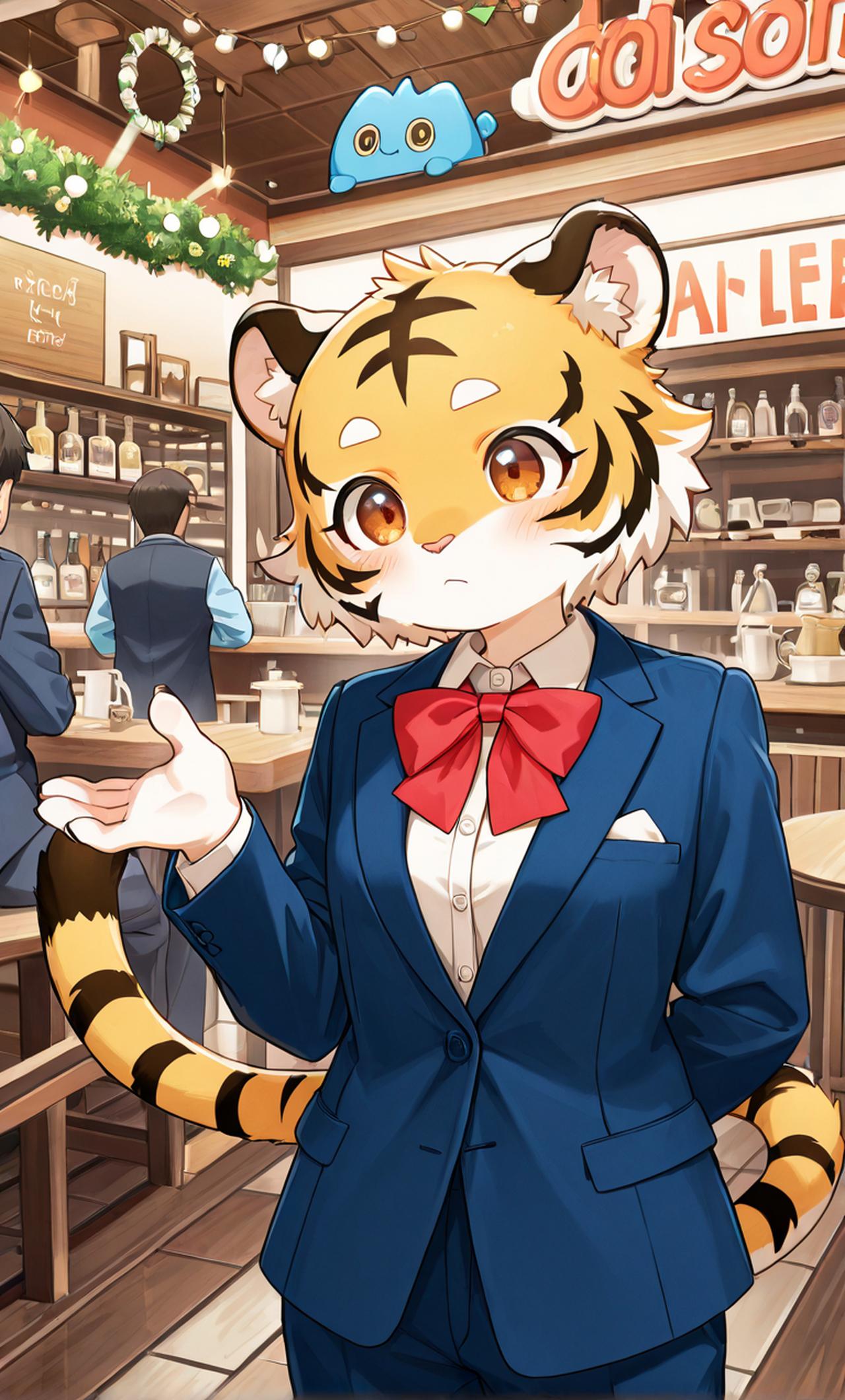 黄色老虎兽太,拥有棕色长发。雌雄同体,外表偏正太,性格开放。贫乳。穿开裆裤,穿长袖礼服