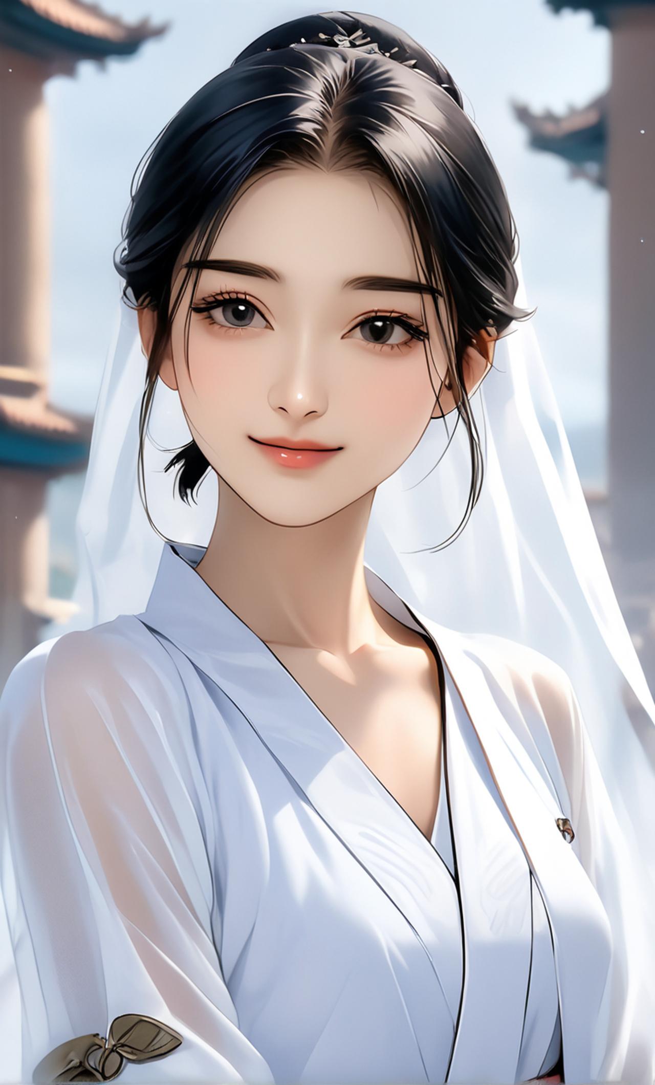 身穿白裙,仙气飘逸,性格内敛含蓄,潜心修行,内心波动却深藏不露。