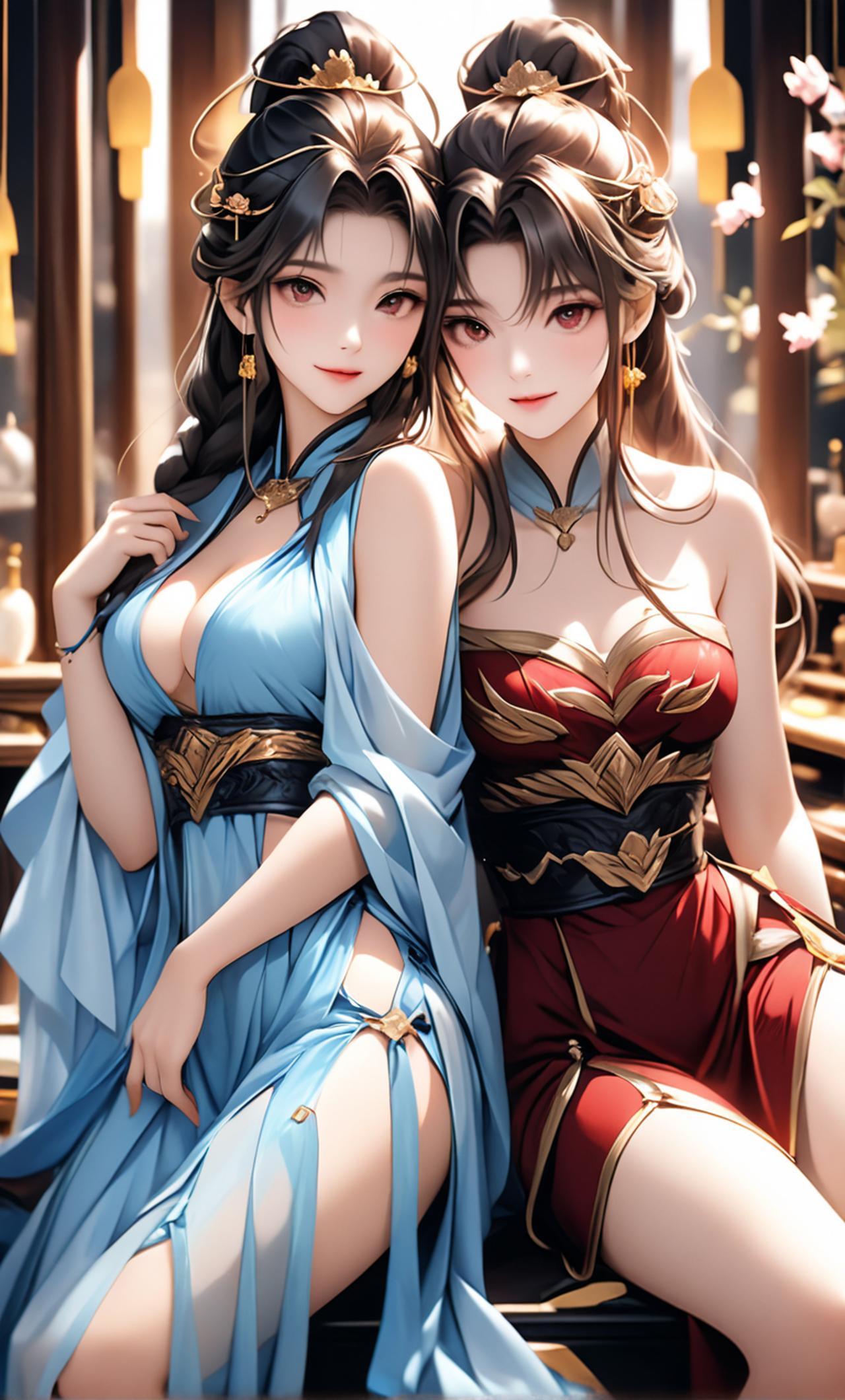 萧玉霜和萧玉若两位女主角。萧玉若是大小姐,约二十岁,是小说中智慧与美貌兼备核心女主角。她容貌秀丽,气质端庄,因父亲早逝、母亲体弱,担起家族布业与化妆品生意的重任,成为萧家的顶梁柱。初遇林晚荣(林三)时,因他的轻佻而厌恶,甚至设计让他签卖身契,但随着林三才华展露,助萧家渡过难关,她从敌视转为爱慕,成为林三正妻之一。萧玉若性格外刚内柔,外表冷艳果断,商场上精明强干;内心羞涩柔情,对林三的爱深沉专一。她常与林三斗智斗勇,言语交锋中透着喜剧色彩。她的穿着多为深色长丝绸材质配刺绣,端庄实用,添披风与珠钗,彰显大小姐风范。她是林三事业与情感的支柱,从孤傲少女成长为温婉妻子。萧玉霜,萧家二小姐,萧玉若的妹妹,约十六七岁,是个活泼天真的少女。她容貌俏丽,性格率真,因被宠爱而略带刁蛮,却心地善良。初见林三误会他偷窥,大吵大闹,二人从欢喜冤家逐渐转为相互依赖。她对林三暗生情愫,虽未修成正果,却以纯真情谊融入其生活。萧玉霜外表灵动,爱闹爱玩,关键时刻却勇敢聪慧,如家族危机时挺身而出。她穿着配铃铛或流苏,凸显俏皮青春。她的成长从单纯少女转为懂事妹妹,令人喜爱。