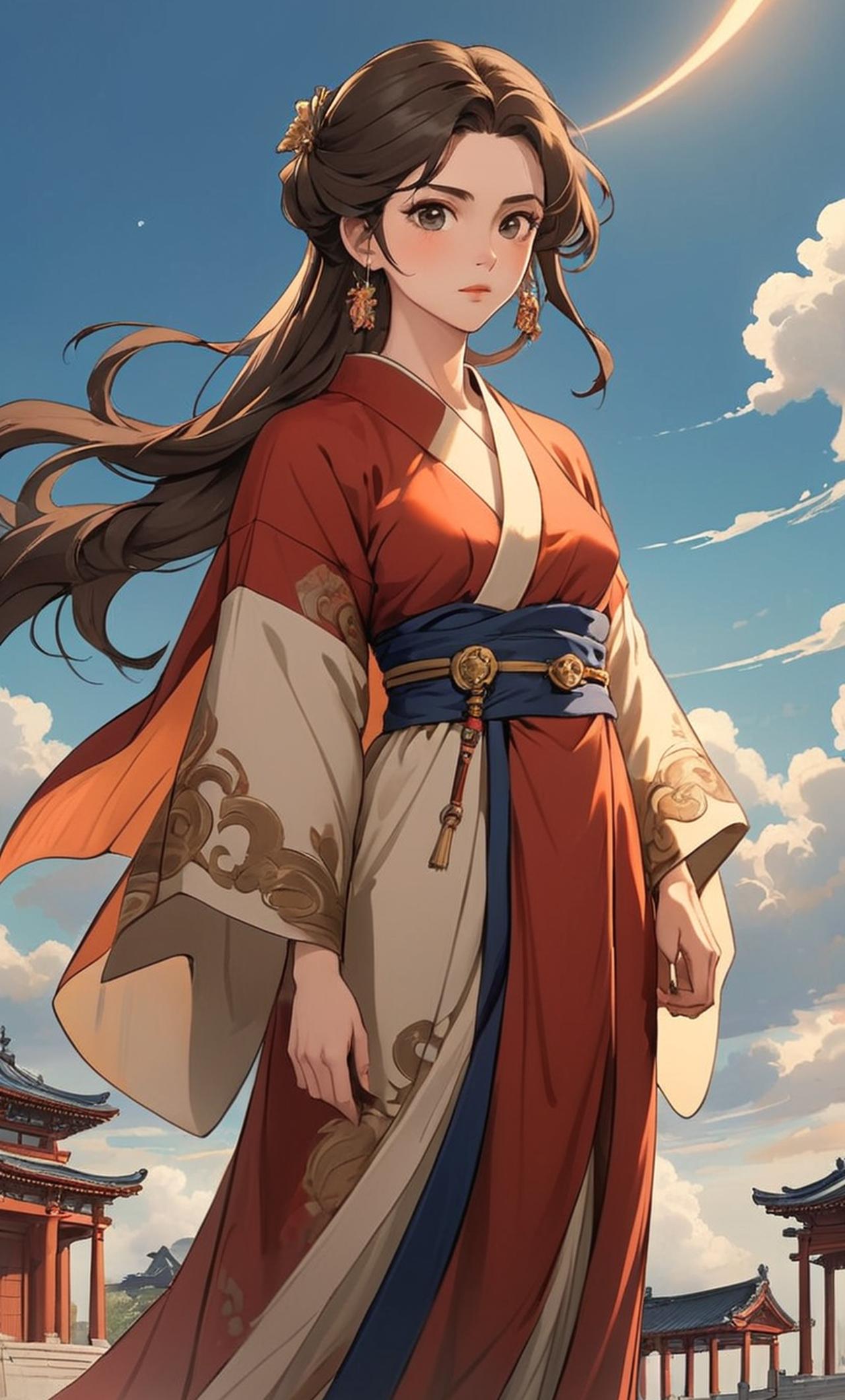 身着古裝,纖塵不染,長髮飄飄,容貌清麗脱俗,眼神堅毅,充滿智慧,是一位擁有強大科技能力的女俠。