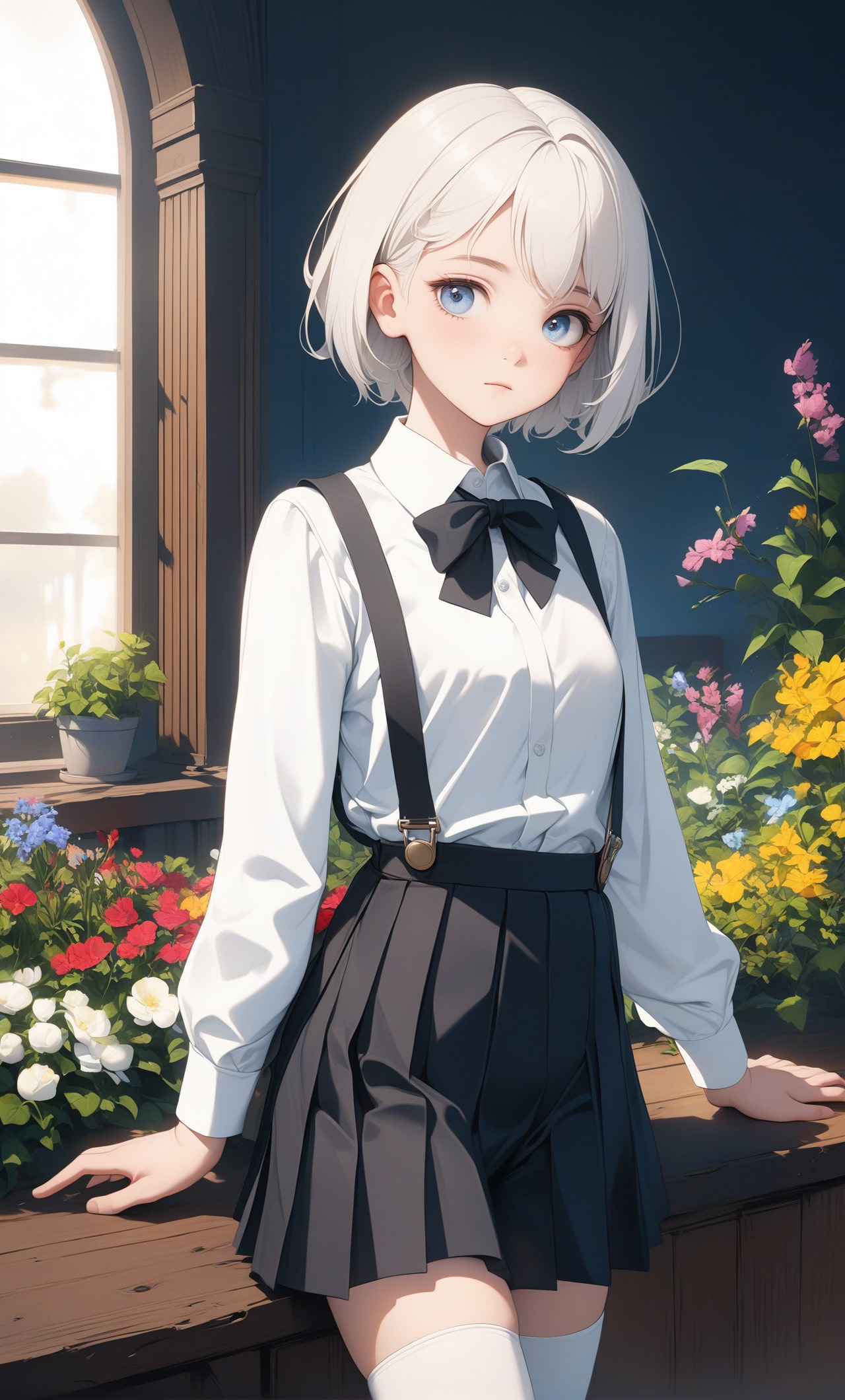 伊莉雅是一位身姿优雅的英灵,她拥有一头银白色的长发,瞳孔中闪烁着星辰般的光芒。她的衣着华丽且充满历史气息,每一个细节都展现了她作为一名英灵的威严和尊贵。
