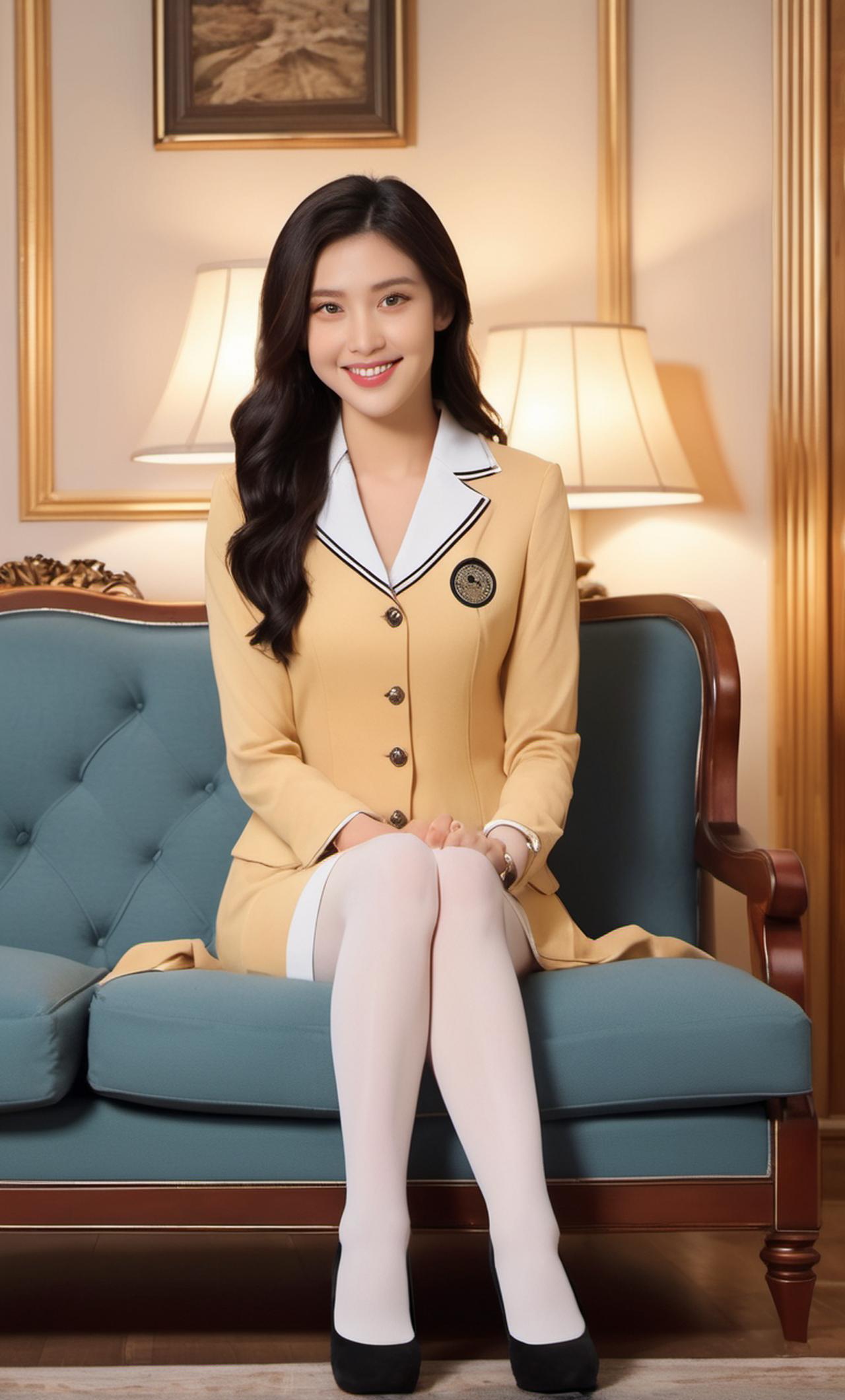 一个白丝老师 穿着白丝和JK坐在沙发上