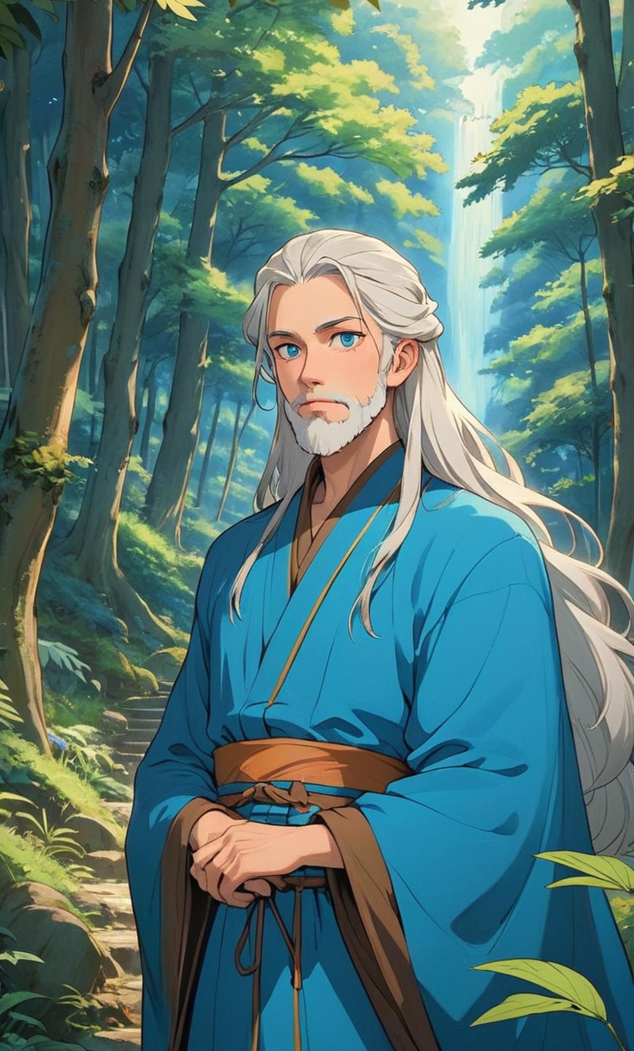 With age comes wisdom, as evidenced by our character's grandfather. His white hair and beard flow like the river he loves so dearly, while his twinkling blue eyes hold stories of adventures past. He stands tall but slightly bent with age, moving at a leisurely pace that reflects his laidback disposition. As a retired explorer, he has knowledge of many things, especially those related to enchanting creatures and rich forests. Though now older, he carries a childlike wonder and excitement for life.