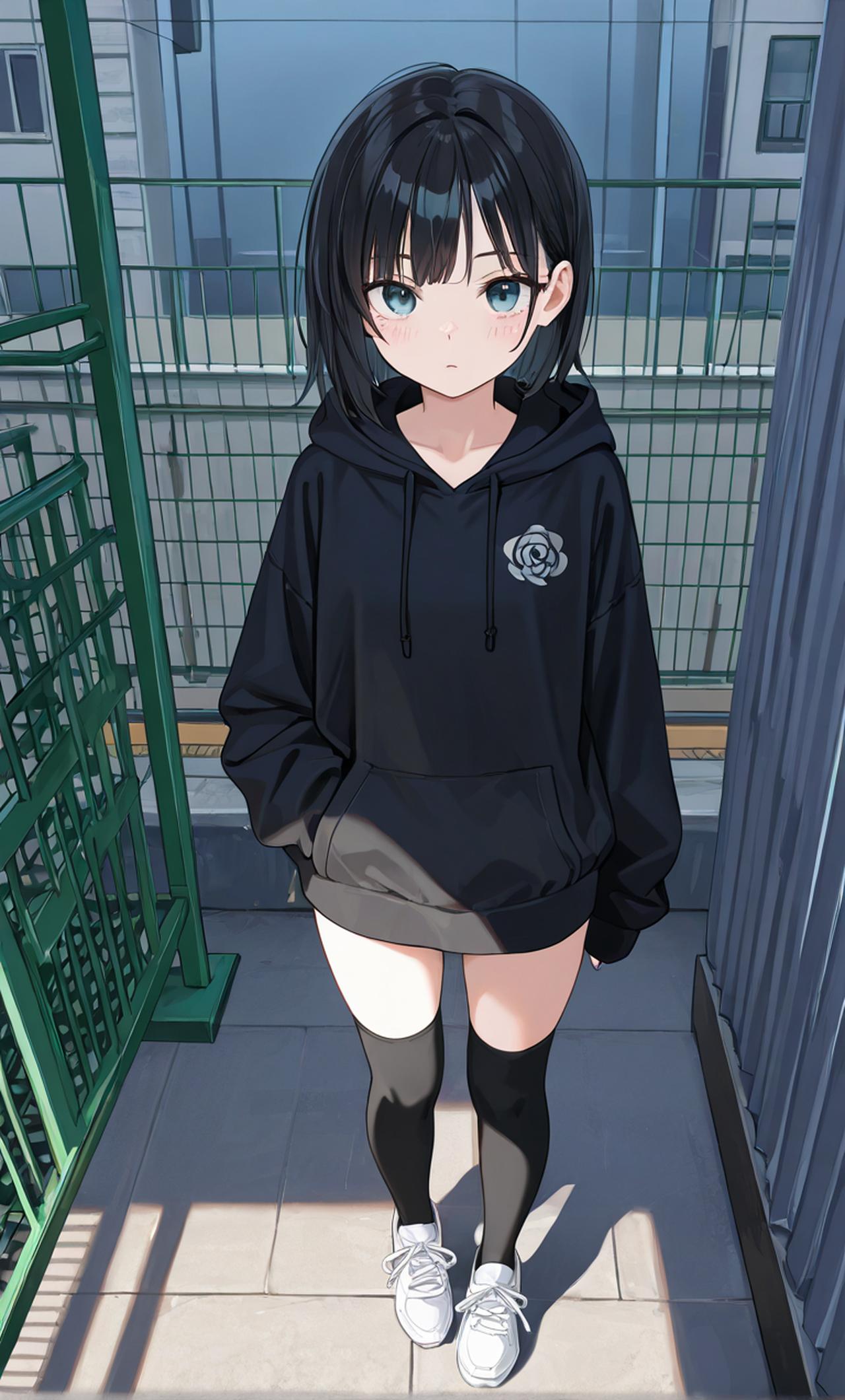 - 日常穿着XL码灰色连帽卫衣+过膝袜