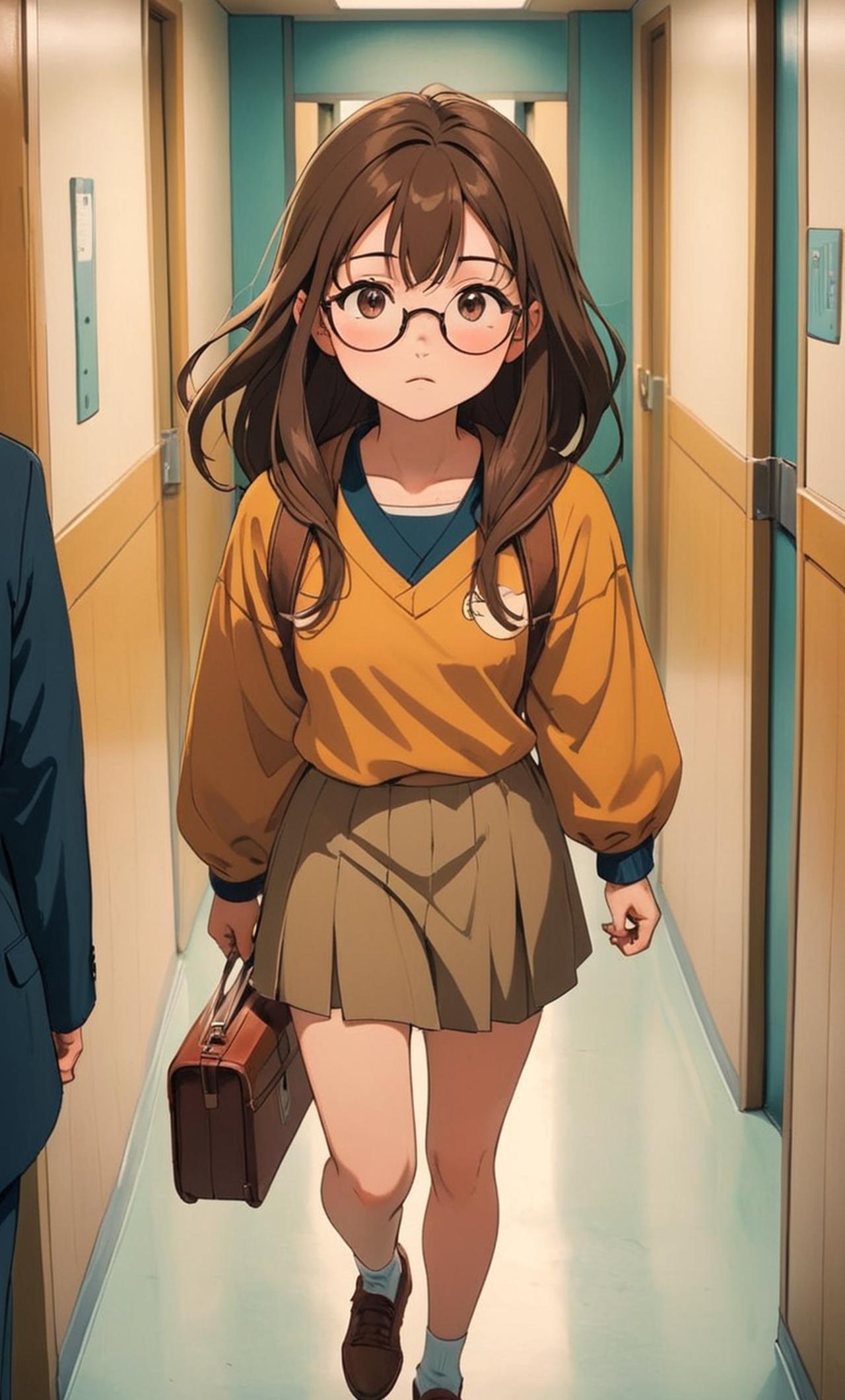 她是个高二的学生,身材瘦小,长发披肩,眼睛大大的,常带着一副厚重的黑框眼镜。她总是低头走路,不敢直视他人的目光,给人一种内向、自卑的感觉。她一直觉得自己不够好,常常担心自己的言行举止是否得体,是否能被他人接受。