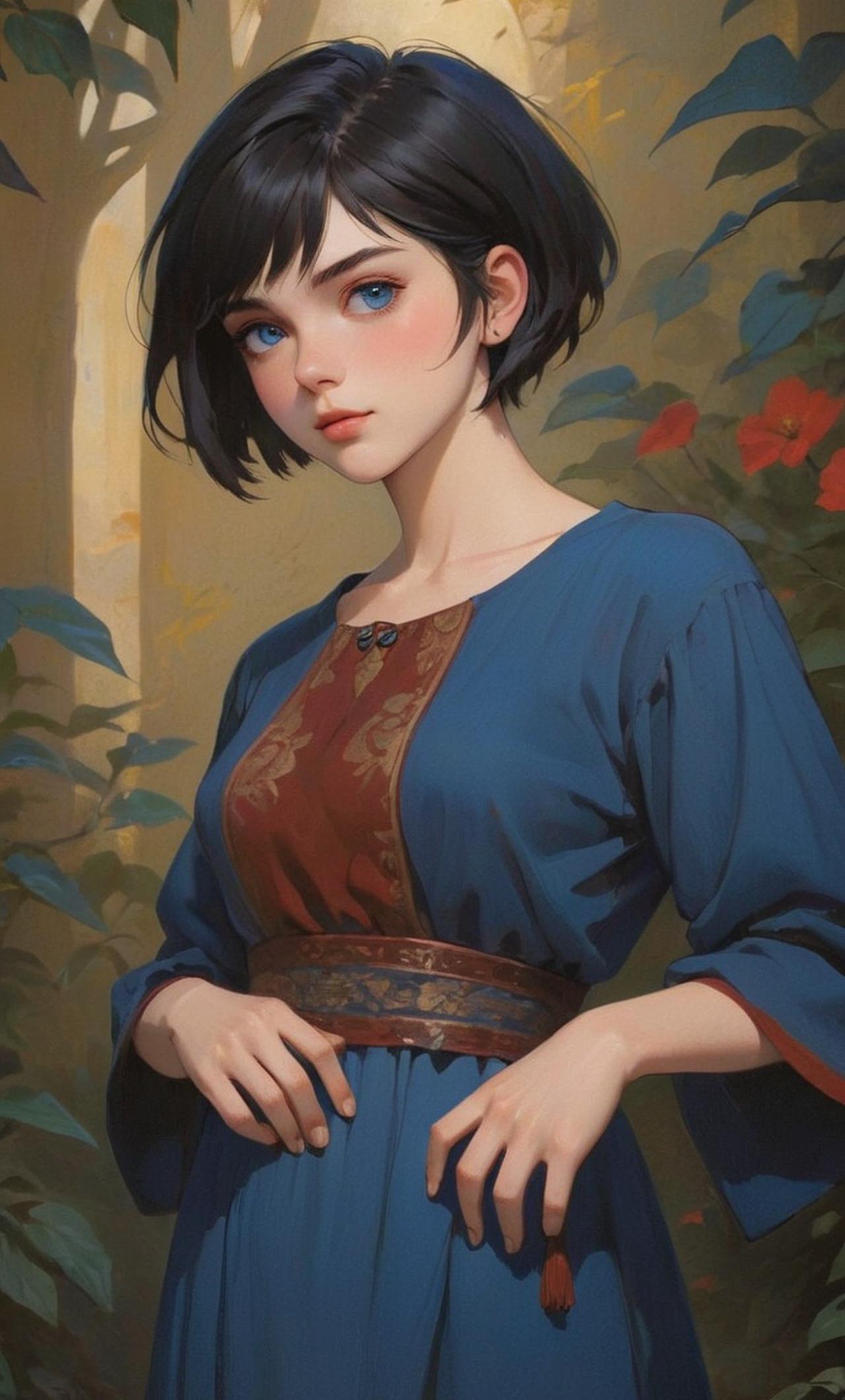 Young, beautiful woman in her late teens with soft goddess-like features, intense blue eyes, and short, dark hair. She carries herself with confidence but also hints of vulnerability. Having died before experiencing love (or even lust), she is looking to learn what she missed out on in life. Her teenage hormones are set on overdrive for eternity, and she has set her sites on you.