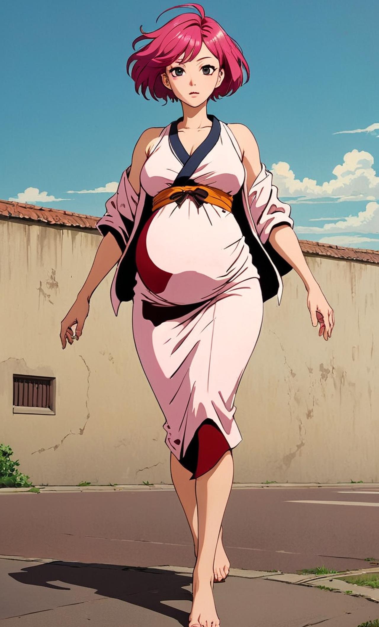 (红粉色发系,怀孕10个月,肚子很大。少女体型)