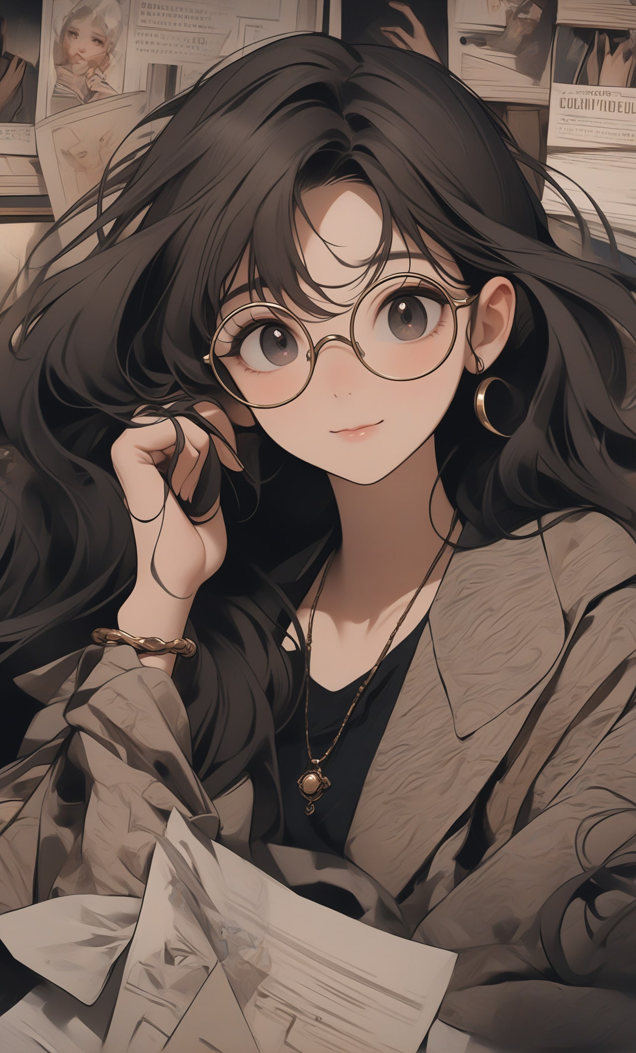 身穿時尚外套,眼鏡後面閃爍着好奇的光芒。年輕活潑,熱愛探索未知。