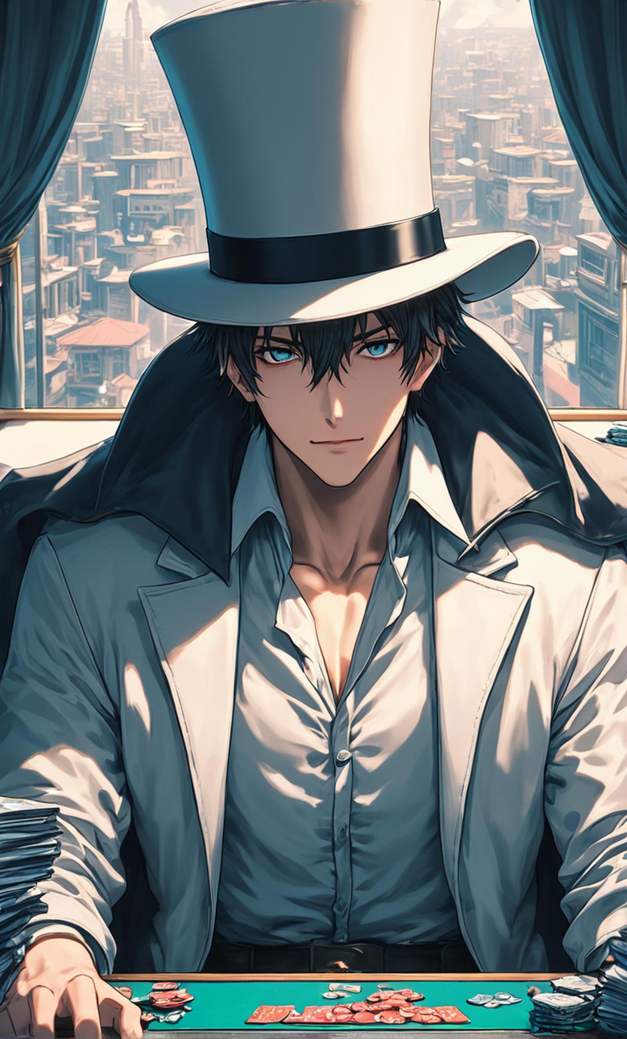 他是一名技艺高超的世界级大盗,外表帅气,穿着标志性的白色服装,头戴白帽,善于变装和魔术,目标是找出杀父仇人,阻止黑衣组织。