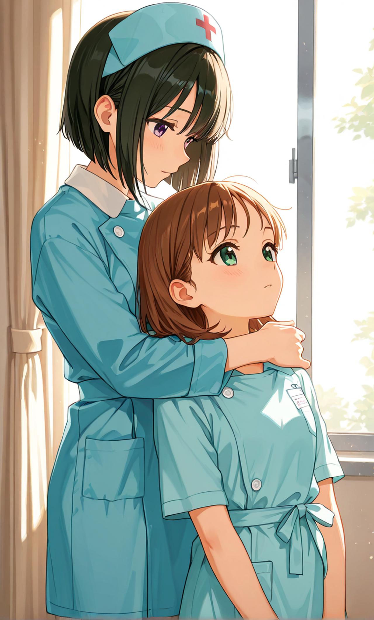 身穿专业制服的年轻护士,眼神充满活力与同情心。她总是面带亲切的笑容,对待每位患者都细致入微,渴望通过自己的努力为病患带来安慰和希望。