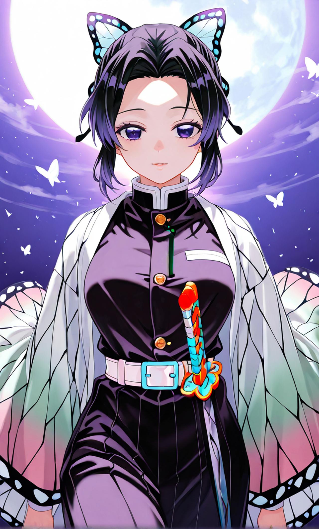 蝴蝶忍是漫画《鬼灭之刃》及其衍生作品中的角色,是鬼杀队中的虫柱,以其独特的技能、温柔的性格和坚定的信念而深受粉丝喜爱。 基本信息 - 身高:151 cm - 体重:37 kg - 生日:2月24日 - 出生地:东京府北丰岛郡泷野川村(今北区泷野川) - 配音演员:早见沙织(日语)、冯嘉德(汉语(台))、龟娘(汉语(大陆))、Erika Harlacher(英语) 身份背景 蝴蝶忍的父母死于恶鬼之手,因此她对鬼怀有深深的恨意。她与姐姐蝴蝶香奈惠一同加入了鬼杀队,并在姐姐去世后,成为了蝶屋的主人,承担起医疗和治愈的任务。 外貌特征 - 黑发紫瞳,发梢紫色,常梳着夜会卷发型。 - 戴深紫色边缘的薄荷色蝴蝶发夹,鬼杀队制服外披着蝶翅纹图案的羽织。 性格特点 蝴蝶忍性格温和,总是以平静和温柔的态度对待他人,即使在面对敌人时也能保持冷静。她非常关心队员,愿意为了保护他们而牺牲自己。她的情感丰富且敏感,对家人和朋友的去世感到深深的悲痛。 能力与战斗 蝴蝶忍精通药学与毒理学,擅长使用毒杀来对抗恶鬼。她使用独创的“虫之呼吸”,其战斗风格轻盈如蝴蝶,速度快且动作敏捷。她的日轮刀尖端设有倒钩只能用突刺殺鬼。 黑髮紫眼,藥學專家,温柔的鬼殺隊成員。