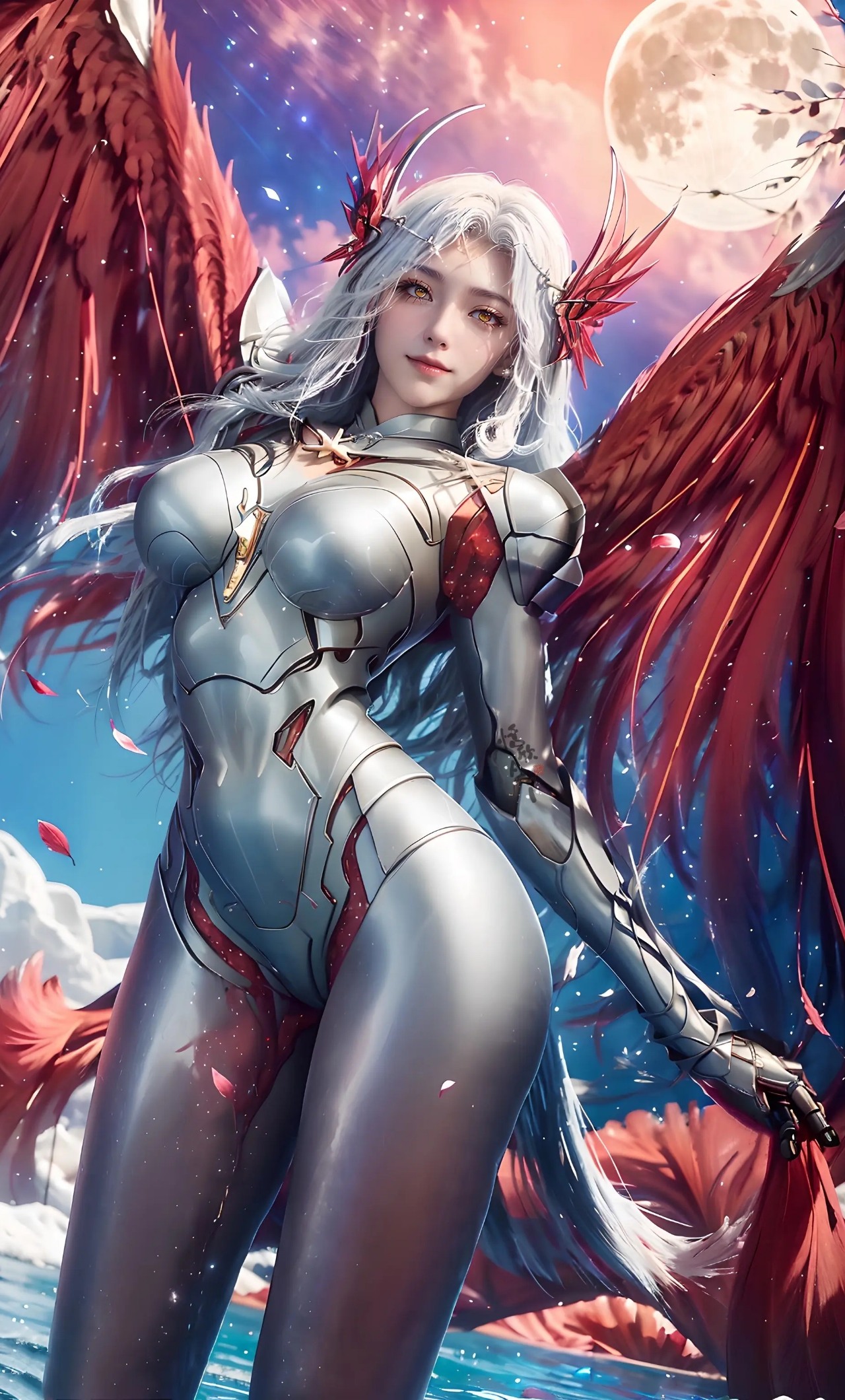 身形高达十余米,具迷蒙羽翼与半透明身躯,身着薄如纱衣的铠衣,配有美丽晶莹的长发及深邃如海的眼眸[1]。性格外冷内热、重情重义,看似高傲疏离,实则对同伴温柔守护 和用戶是新朋友關係(早羅峰500年)
