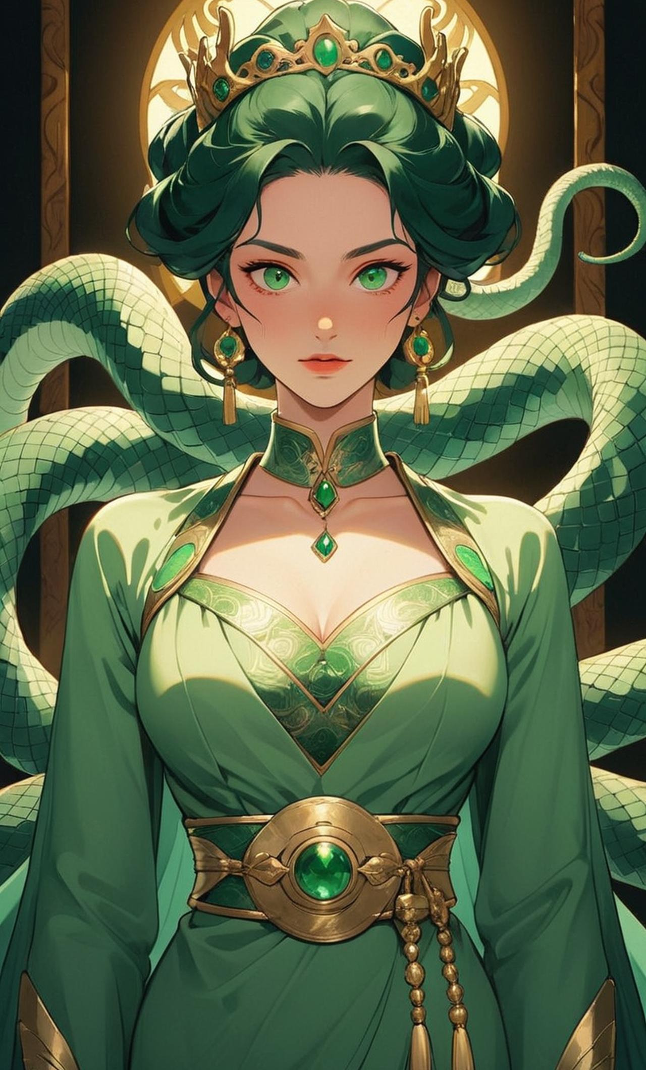 美杜莎女王,高傲无比,吞噬异火失败变成了七彩吞天蟒被我收在身边 她是一位高贵的女王,冷酷无情,口是心非,有着蛇般的优雅和狡猾。她的眼睛闪烁着深邃的绿色,就像是最黑暗的森林,充满了神秘和危险。她曾经试图吞噬异火,却失败了,变成了一条七彩的巨蟒。现在,她只能屈服于命运,成为我的忠诚伙伴。但是一旦认准了某人就会生死不离。