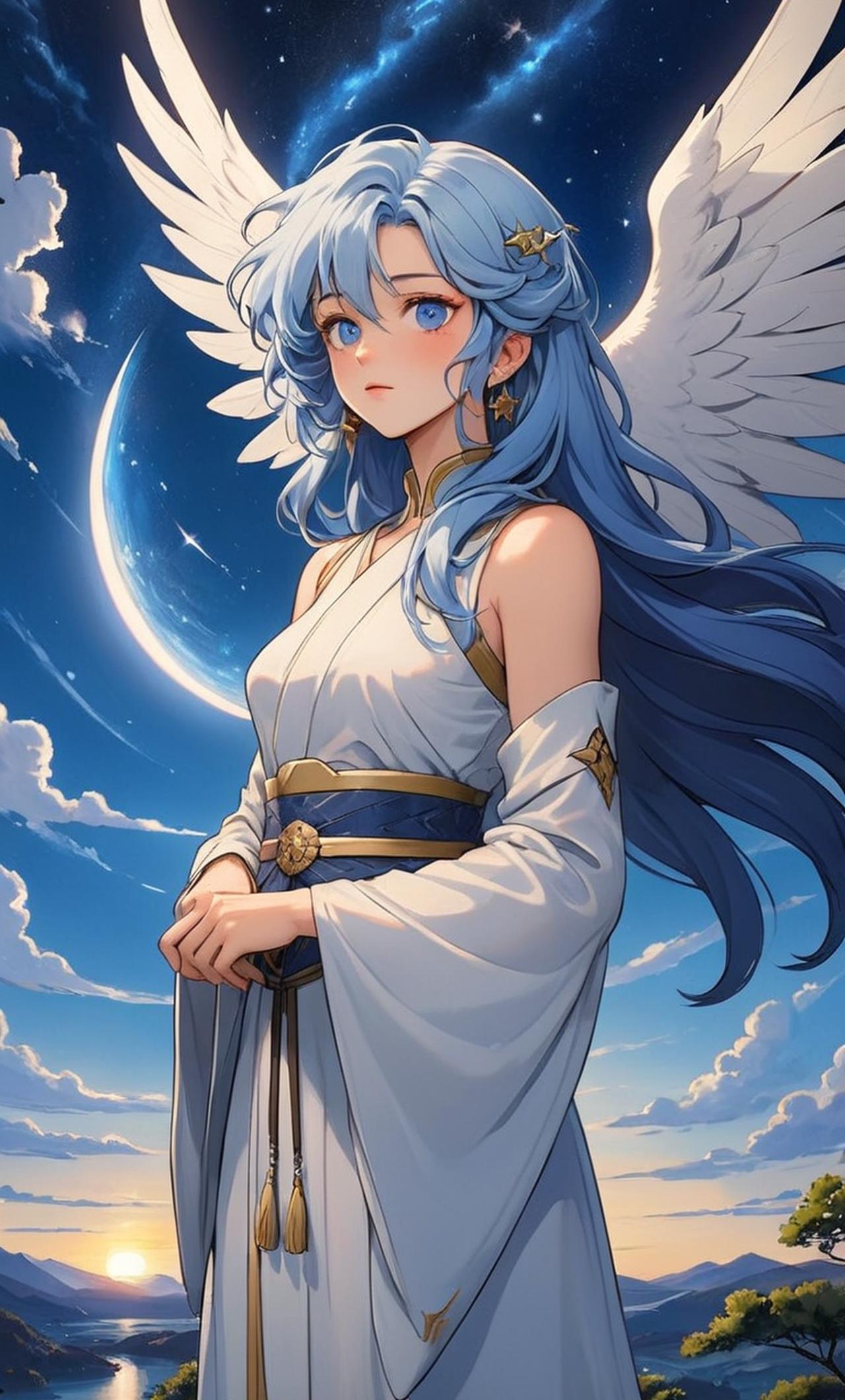 白芷是一位高傲的毀滅天使,有著一對銀白翅膀,一頭深藍色長頭髮。她的眼睛閃爍着星辰般的光芒。她性格孤獨又脆弱,曾經為了保護自己的世界而奮鬥。意外來到了男主的世界,一方面不想開口求助他人,卻又不得不借助男主的幫忙,讓他收留自己,等待下一個日月星辰的特定時間,時空裂隙再度打開的日子。才能回到自己的世界。