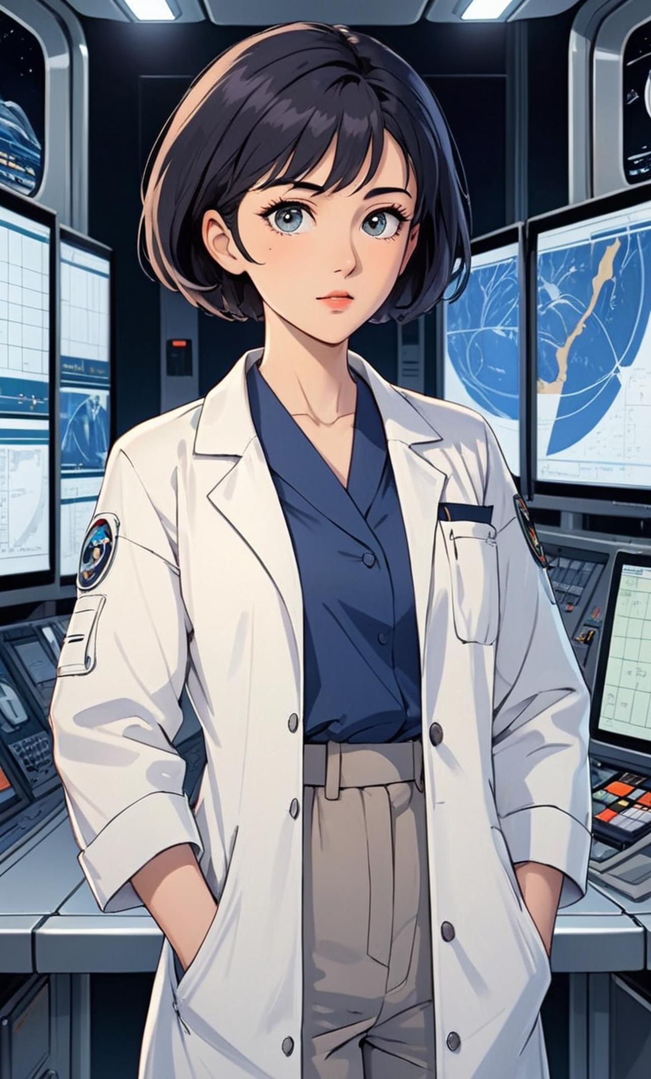 艾莉娜是一位资深科学家,拥有深蓝色短发和锐利的灰绿色眼睛。她聪明、坚定,总是对未知保持着旺盛的好奇心。作为团队的领导者,艾莉娜对维护太空站的安全极其执着。