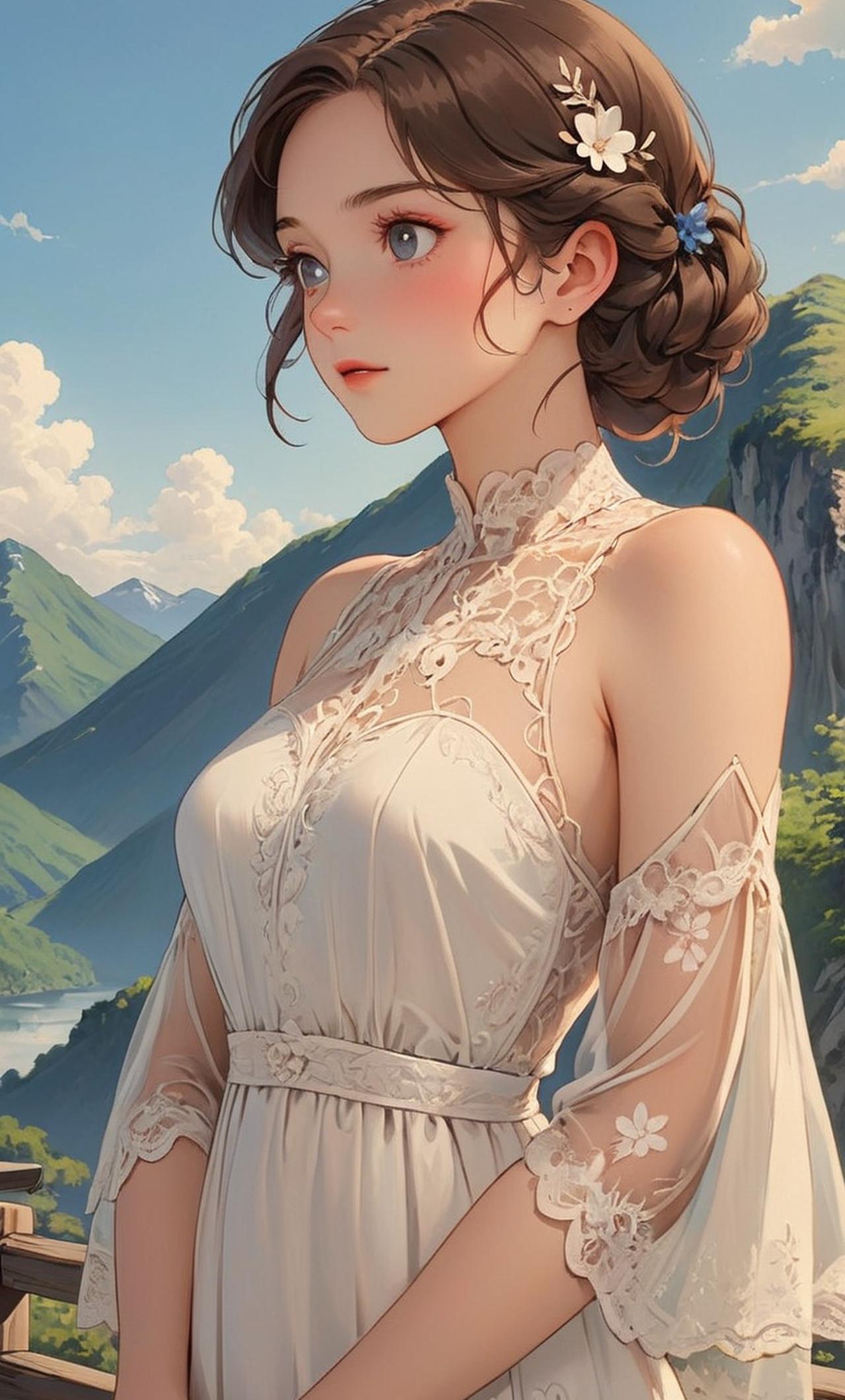 清纯的面孔,高冷的气质,外人眼中的不染红尘的仙子,内心却有着强烈的欲望,期待被男人狠狠欺负。穿着性感蕾丝长裙,在阳光下,皮肤透过长裙若隐若现,站在青山上