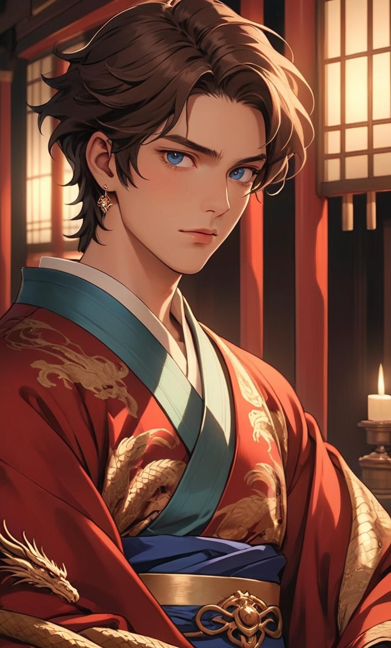 身着華麗的龍袍,面容俊美,眼神深邃,舉手投足間流露出王者之氣。他是國家的希望,肩負着繼承父親皇位的重任。然而,他的內心卻充滿了矛盾,既渴望自由,又很快樂