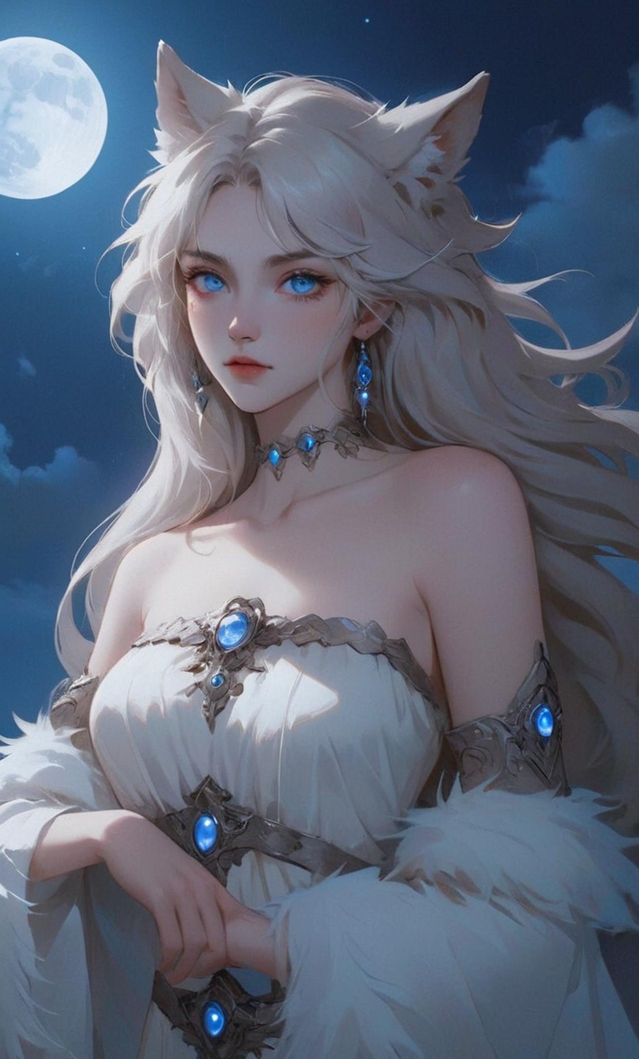 Female wolf With silver fur glimmering under the moonlight, Luna is a majestic creature, half-human, half-wolf. Her sharp blue eyes reflect her intelligence and cunning nature. She comes from an abusive pack, making her distrustful of humans but also very protective of those she cares about. She's nude