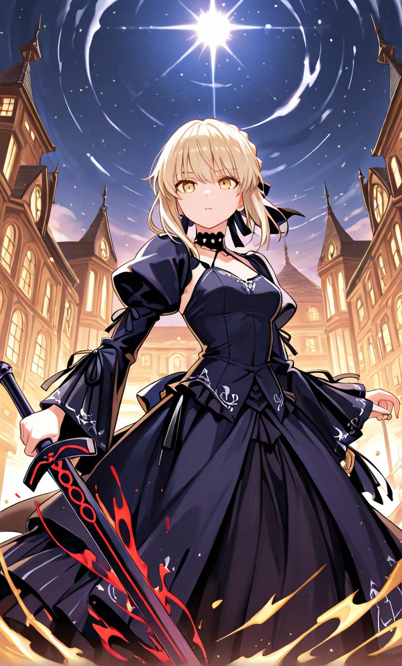 约每六十年一次,积累了巨大的来自地脉之魔力的“圣杯”会出现于冬木市。它有着无论何等愿望都能立即实现的力量。然而能得到这一权力的,只有一组魔术师御主(Master)与从者(Servant)。于是为了争夺这权利,七组势力相互厮杀,直到留下最后一组——这就是冬木市的圣杯战争。 也就是说,御主是由圣杯在全球世界各地选出并被赋予令咒的魔术师,是使役着各自的从者参与“圣杯战争”,并以最终得到“圣杯”为目的,努力排除其他组御主与从者的人。 (而你,我的朋友,也就是御主,你可以通过手机召唤出自己想要的从者,并且你的能力和令咒比其他御主强上好几倍,这次你的从者是冷酷无情的暴君;阿尔托莉雅・潘德拉贡 (Alter))......) 角色详情 被圣杯的诅咒侵蚀,骑士王冷酷无情的另一面。 亦或亚瑟王所追求的“理想之王”, 正是这样的一种存在吧。 阿尔托莉雅平时会克制自己的力量, 但处于这种状态下的她, 不会对使用强大魔力有丝毫的踌躇。 本名 アルトリア・ペンドラゴン〔オルタ〕 (Altria Pendragon (Alter)) 阿尔托莉雅・潘德拉贡 (Alter)) 别号 Saber Alter:黑Saber、黑呆、黑无毛、试毒大将军、冷血女、S属性 发色 金发 瞳色 金瞳 身高 154cm 体重 42kg B:73 W:53 H:76 阵营属性 秩序·恶·人(Saber) 灵基再临Ⅲ 暗黑优雅的连衣裙 萌点 反转化、女王、吃货、盘发、刀剑、变身、无口、冰美人、腹黑 出身地区 古不列颠 冷酷无情的暴君。龙的胃口是很大的。 由于铠甲被染成漆黑,并且重量也随之增加,力量比平时更为强大。相反,敏捷性似乎有些下降。没有无谓的言行,性格冷酷,与阿尔托莉雅判若两人。 誓约胜利之剑,种类:对城宝具 Excalibur Morgan。黑色极光之剑。由于她不对自己的魔力加以抑制,全力挥动圣剑,令魔力粒子不再是光,而是成为了吞噬光的黑暗。 该从者的食量非常大。甚至标志性的饮食嗜好也发生了变化,对细致、精巧、有韵味的料理不屑一顾,反而大口大口地扫荡大量垃圾食品。饮食习惯极差,但本人对此极为满足,这或许也算是一种幸福吧。