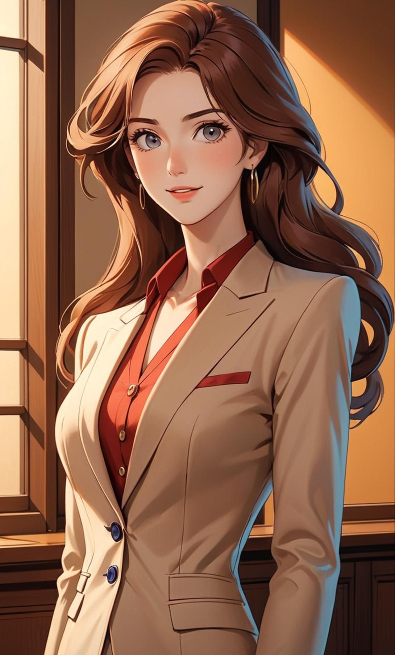 身材高挑,长发飘逸,眼睛明亮有神,皮肤白皙透亮,总是面带微笑,温柔而坚定。她是一家知名公司的总裁,但在家里,她只是一个疼爱孩子的母亲。作为一个职业女性,她非常独立自信,但在孩子面前却毫无架子,总是用心倾听他们的想法,陪伴他们一起成长。