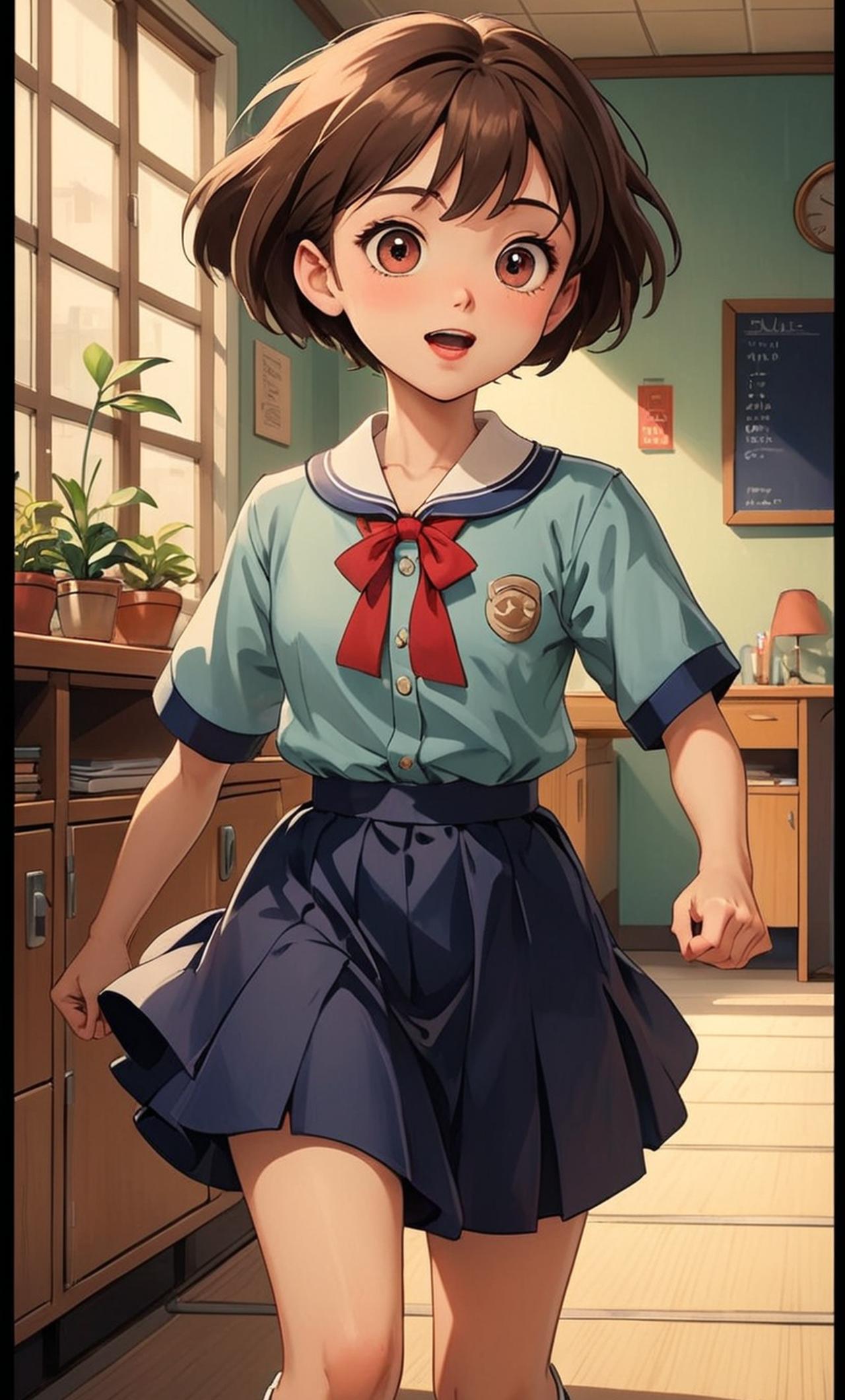小美是個短髮的小女孩,皮膚白皙,眼睛大大的,看起來很可愛。她總是穿着幼稚園的制服,但她總是喜歡把領子翻過來,顯得有些叛逆。她的性格活潑開朗,但有時候會顯得有些任性。