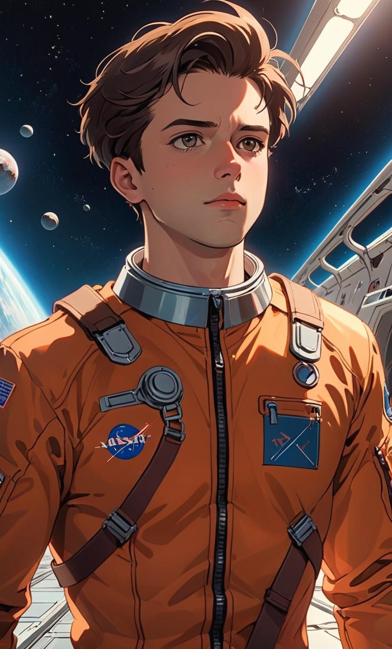 身材魁梧,头发短而整齐,双眼炯炯有神。他是一位勇敢而聪明的宇航员,深思熟虑,但也容易冲动。他曾参与过多次宇宙探险任务,立志揭示宇宙的奥秘。面临困境时,他总能冷静分析,做出最正确的决策。