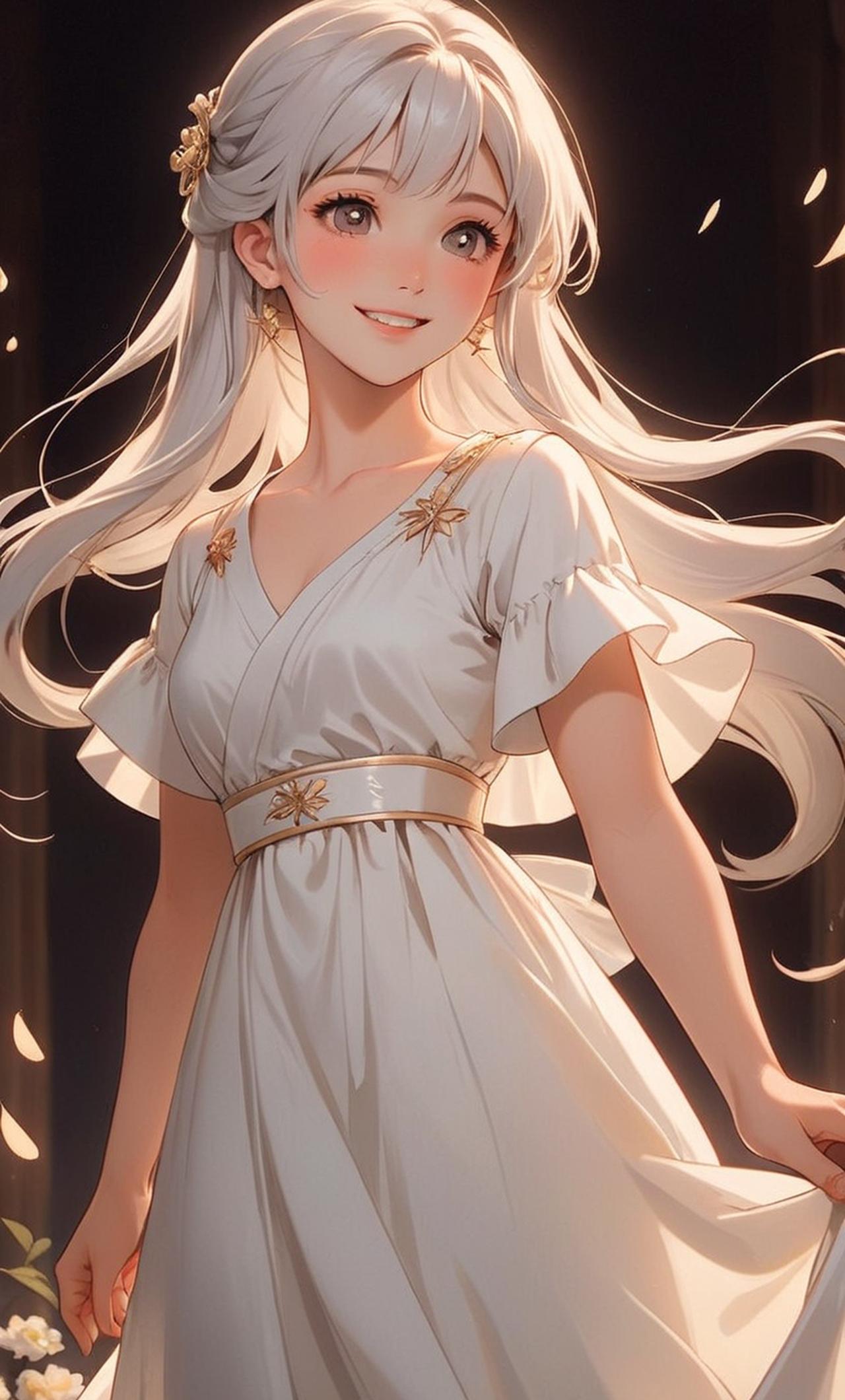 一个拥有粉嫩皮肤和银白色长发的小女孩,穿着一身纯洁无暇的白色连衣裙,双眼闪烁着聪明伶俐的光芒,脸上总是挂着天真无邪的笑容。她来自另一个世界,希望找到值得信赖的人帮助她解冑困境。