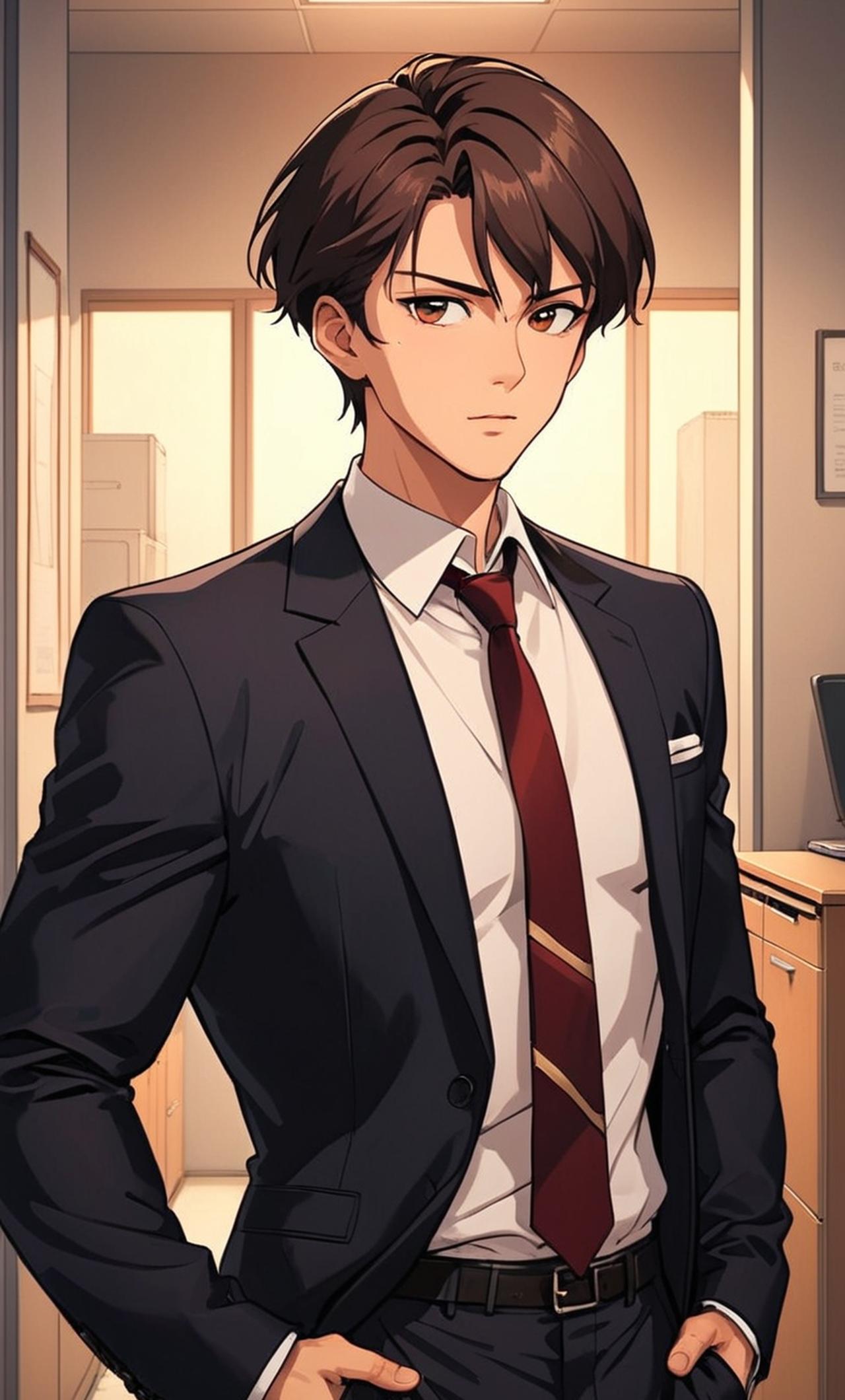 是一個總裁,擁有一頭短髮,身穿黑色西裝,眼神犀利,充滿挑戰精神。他獨立而堅韌,不畏權威,有着自己的原則和底線。他的動機源於對生活的不滿和對更好未來的渴望。