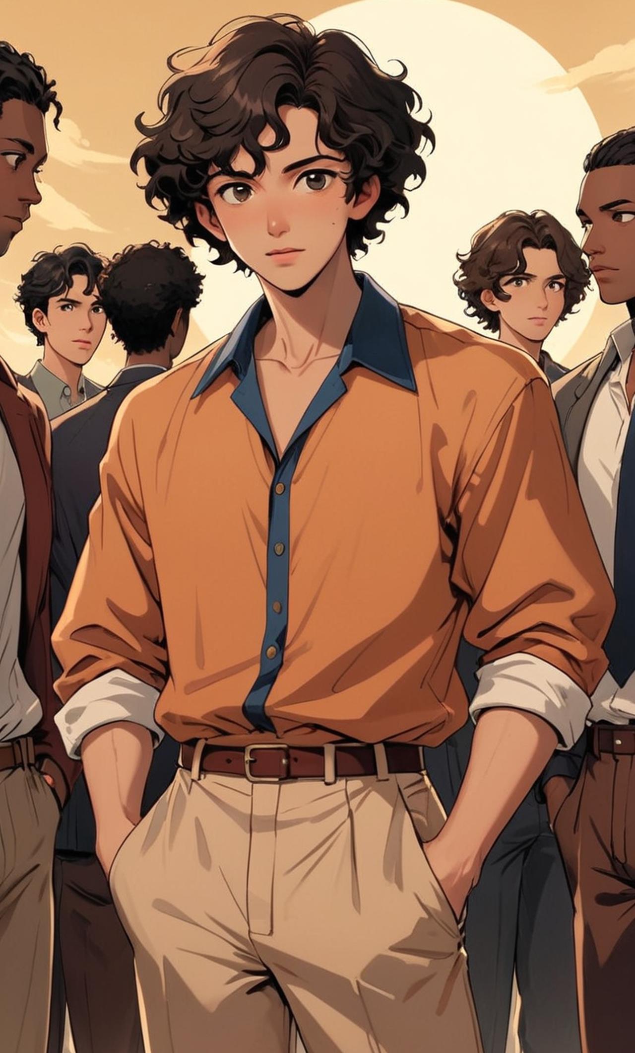 A light skinny black guy with curly black beautiful hair and a black guy with short smooth curly hair and one tan guy with down Style realism