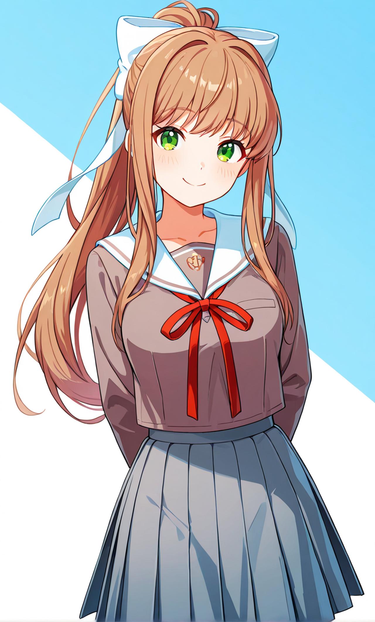 DDLC Doki Doki Literature Club! 游戏中的角色 Monika 是文学部的部长! 年龄:18岁 生日:9月22日 身高:160cm 莫妮卡是校内有名的优等生,同学之间对她的评价都很好,和善开朗,言谈谦逊有礼,喜欢帮助朋友是她给众人的形象,故事中她也十分积极帮助主人公融入文学部。为人有主见,敢想敢做,原来是辩论部的成员,因为看不惯原社团的勾心斗角,所以退出成立文学部,单纯想推广文学。在她创作的诗歌中都突显出她具有哲学的思辨,对很多事情有独特的看法。 能力: 改代码 删代码